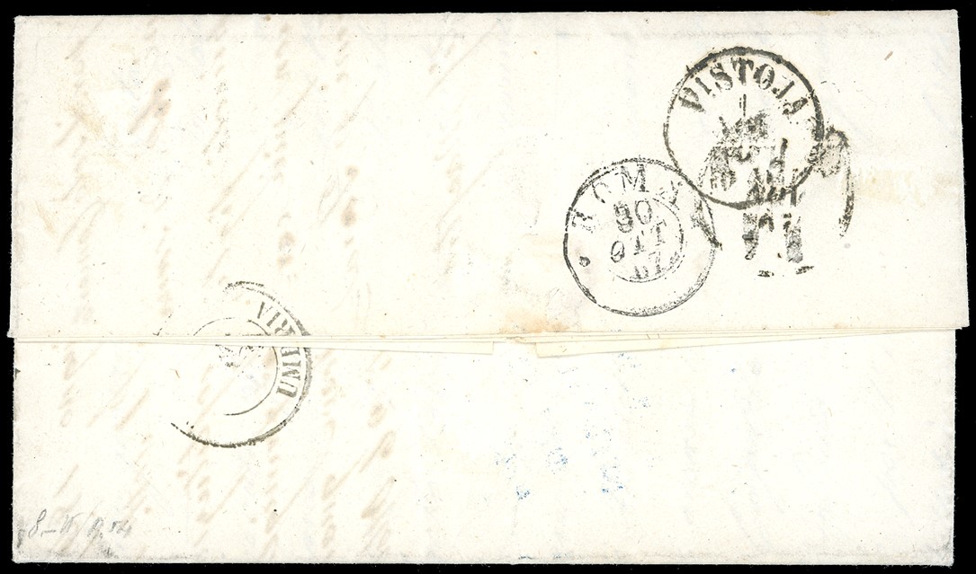 Perfetto, su fresca lettera da Arsoli 29/10/1867 a Todi. Splendida lettera risalente al giorno di occupazione dalle Truppe Garibaldine della città di Arsoli. Riprodotta a pag. 119 del volume "1867-1810 da Mentana a Porta Pia".