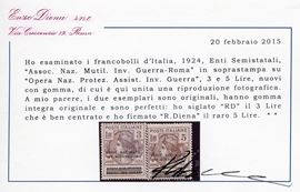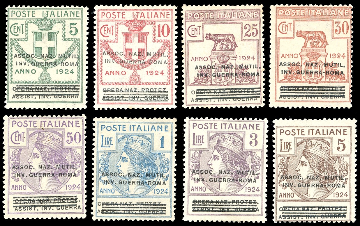 REGNO D'ITALIA - ENTI PARASTATALI ASSOC. NAZ. MUTIL. INV. GUERRA-ROMA 1924 - Soprastampati, serie completa (70/77)