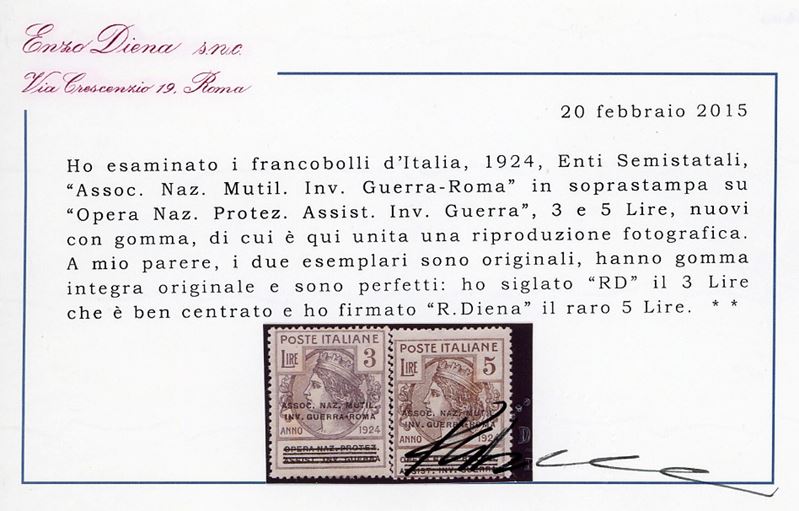 Nuovi, gomma originale integra, perfetti. Molto freschi e centratura sopra la media. Alti valori cert. Diena. Cat. € 16.000
