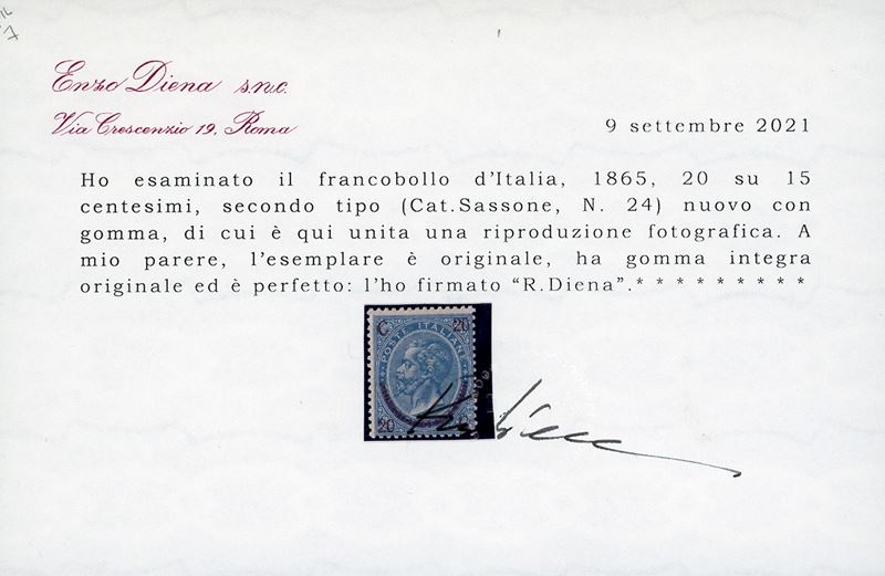 Discreta centratura, gomma originale integra, perfetto. A.Diena, G.Oliva, cert. Ferrario e Diena (cat.Sassone € 13.000/45.000).
