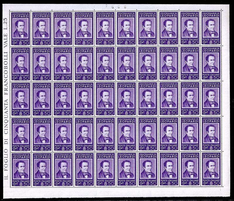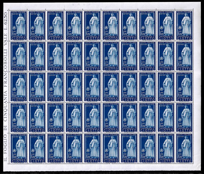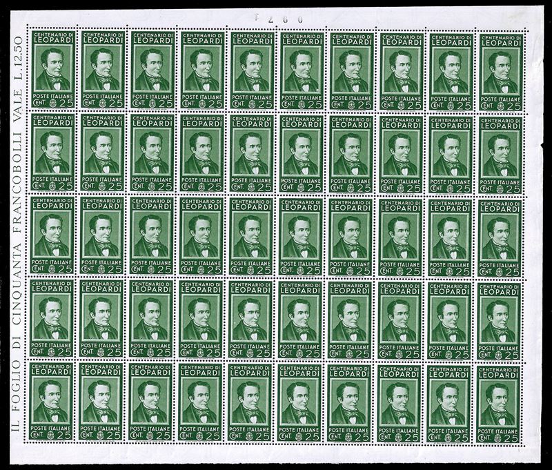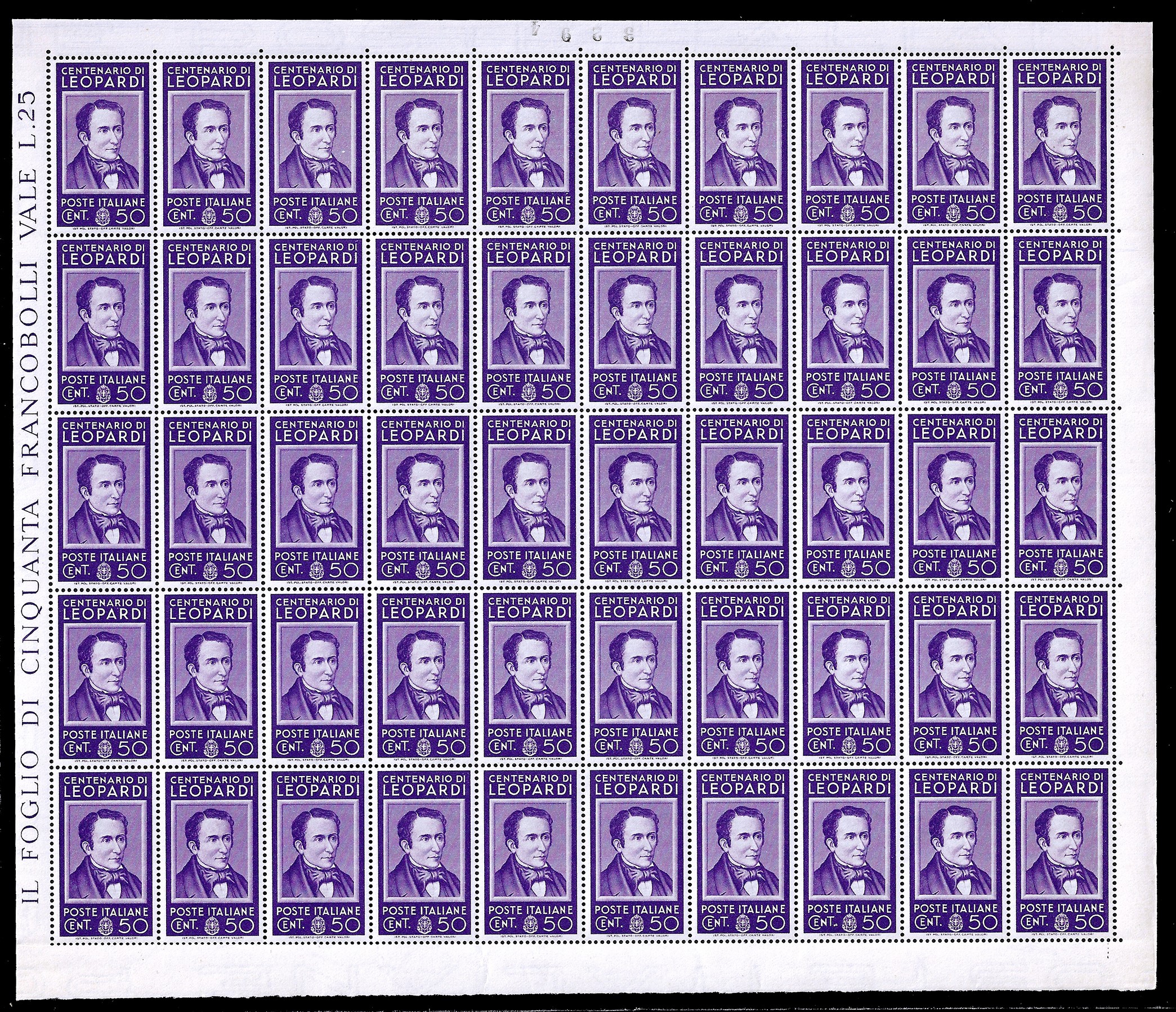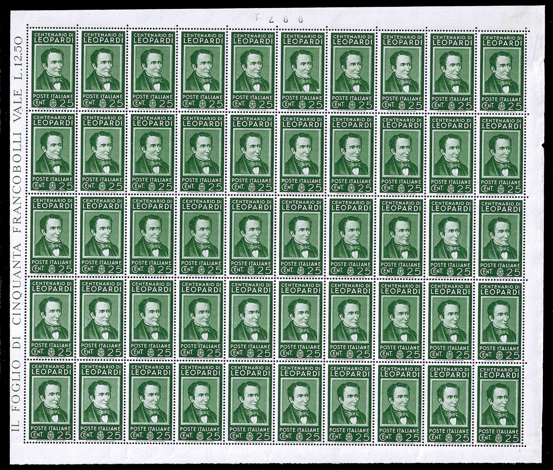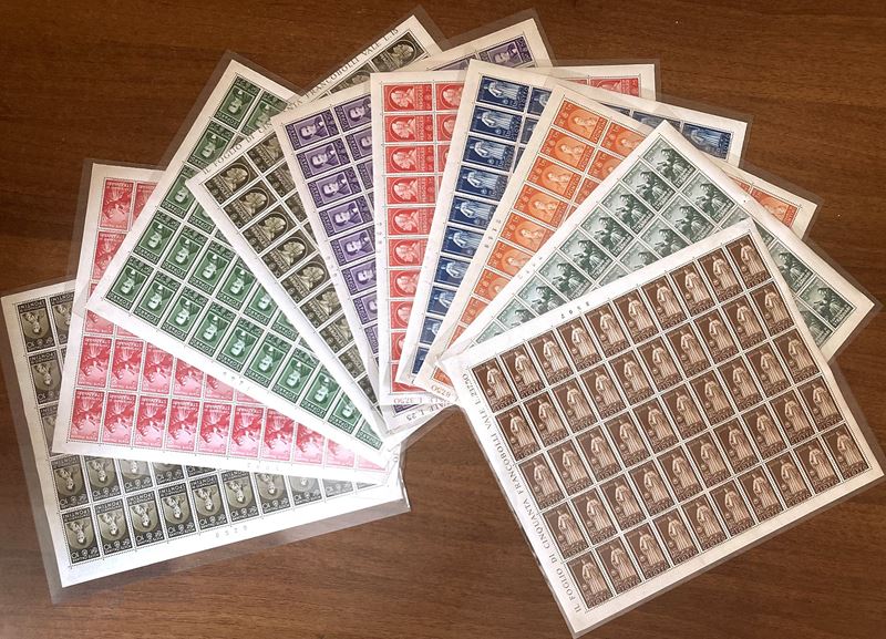 REGNO D'ITALIA 1937 - Uomini illustri, serie completa (426/435), fogli completi di 50 esemplari