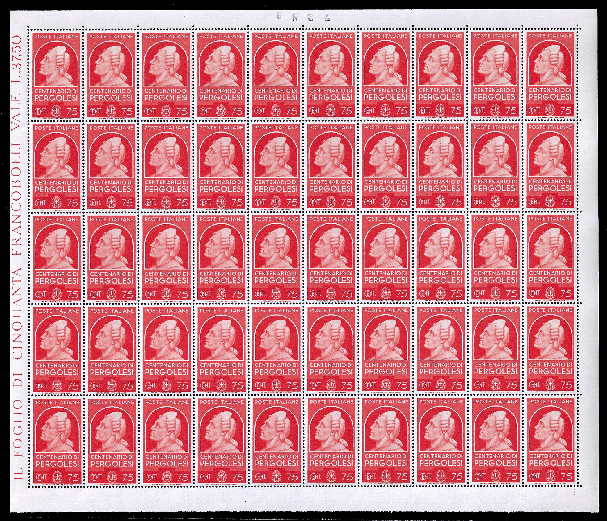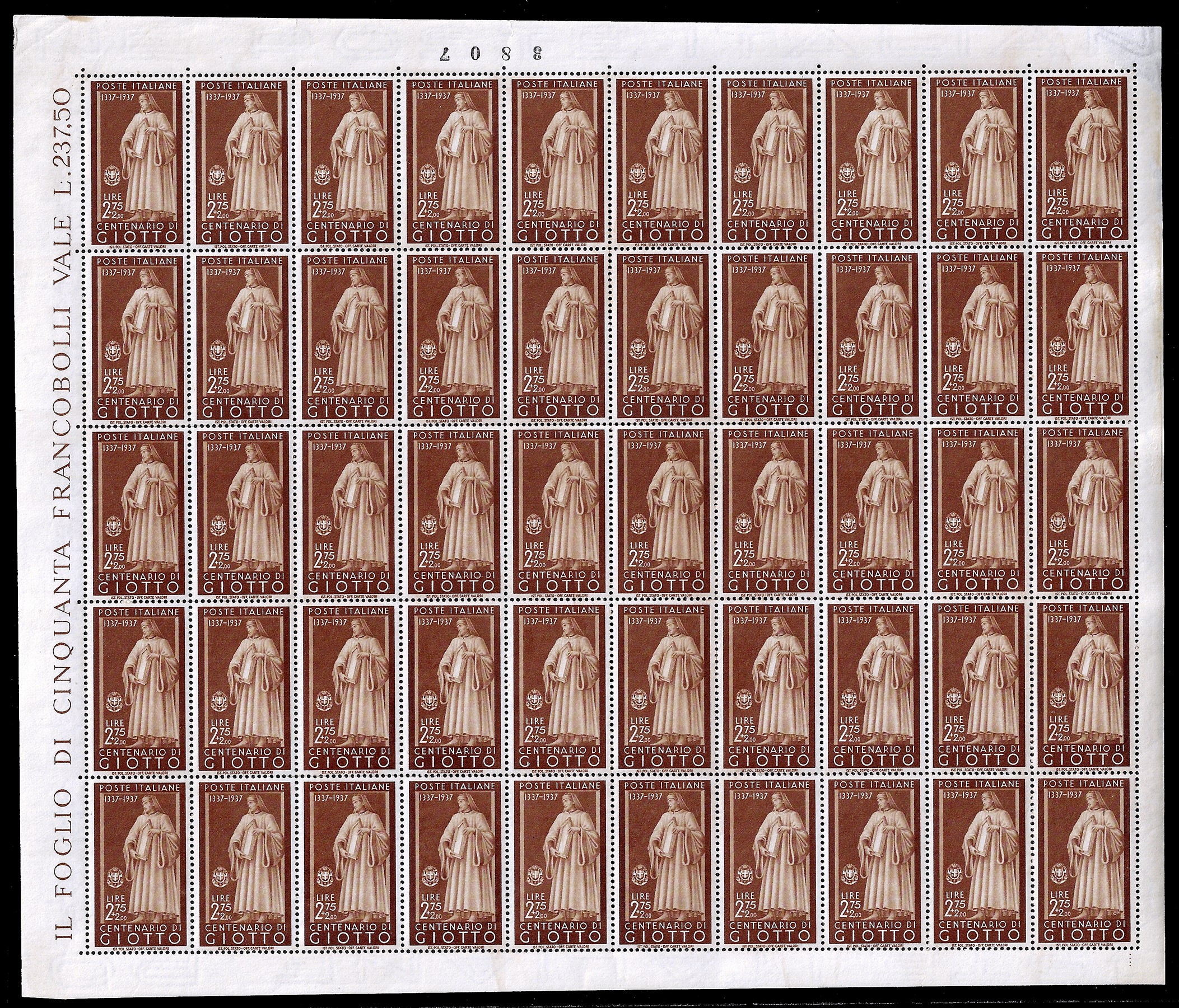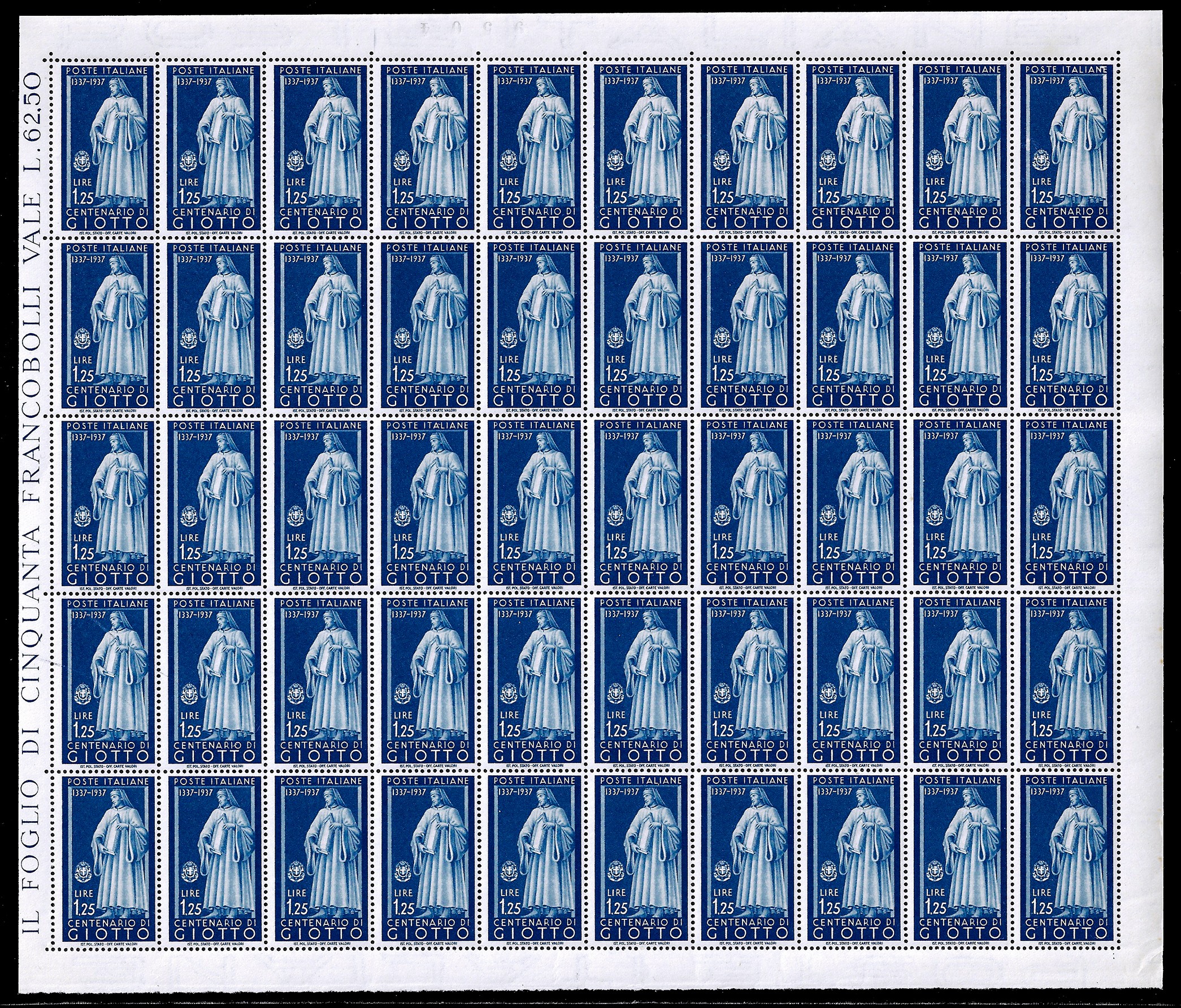 REGNO D'ITALIA 1937 - Uomini illustri, serie completa (426/435), fogli completi di 50 esemplari