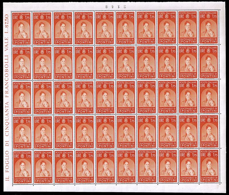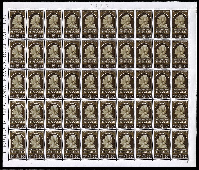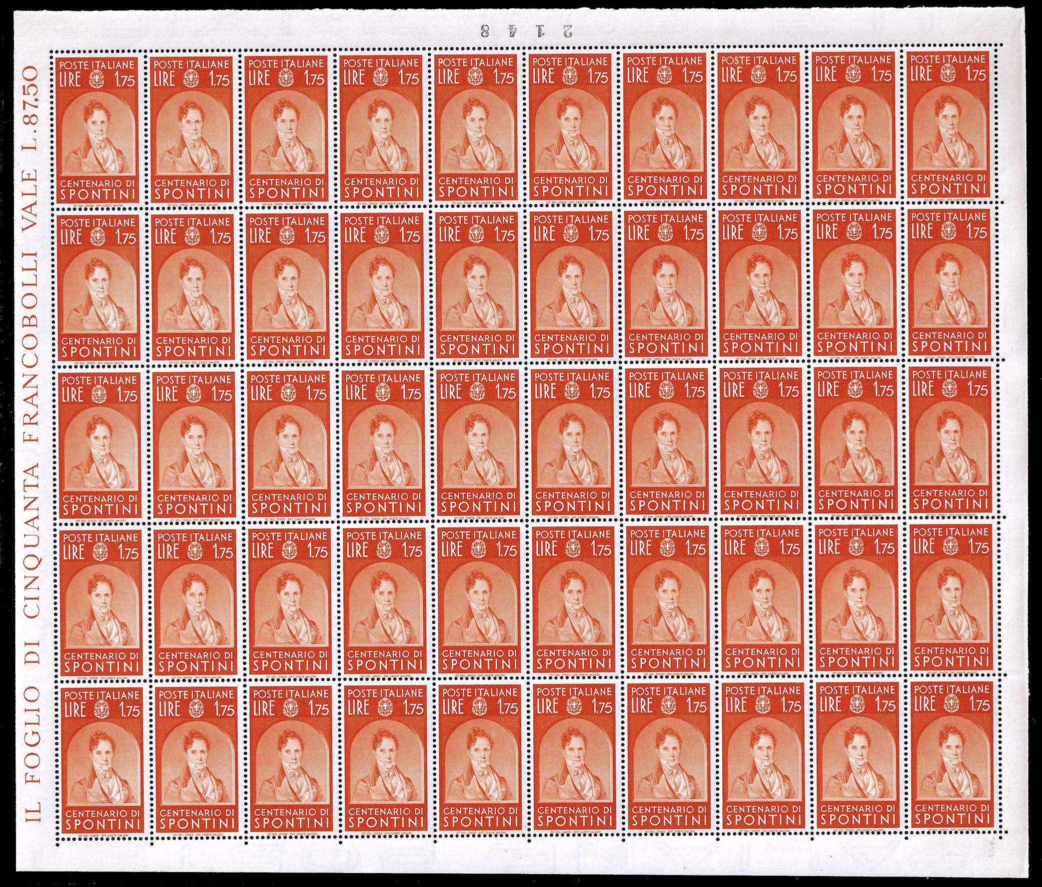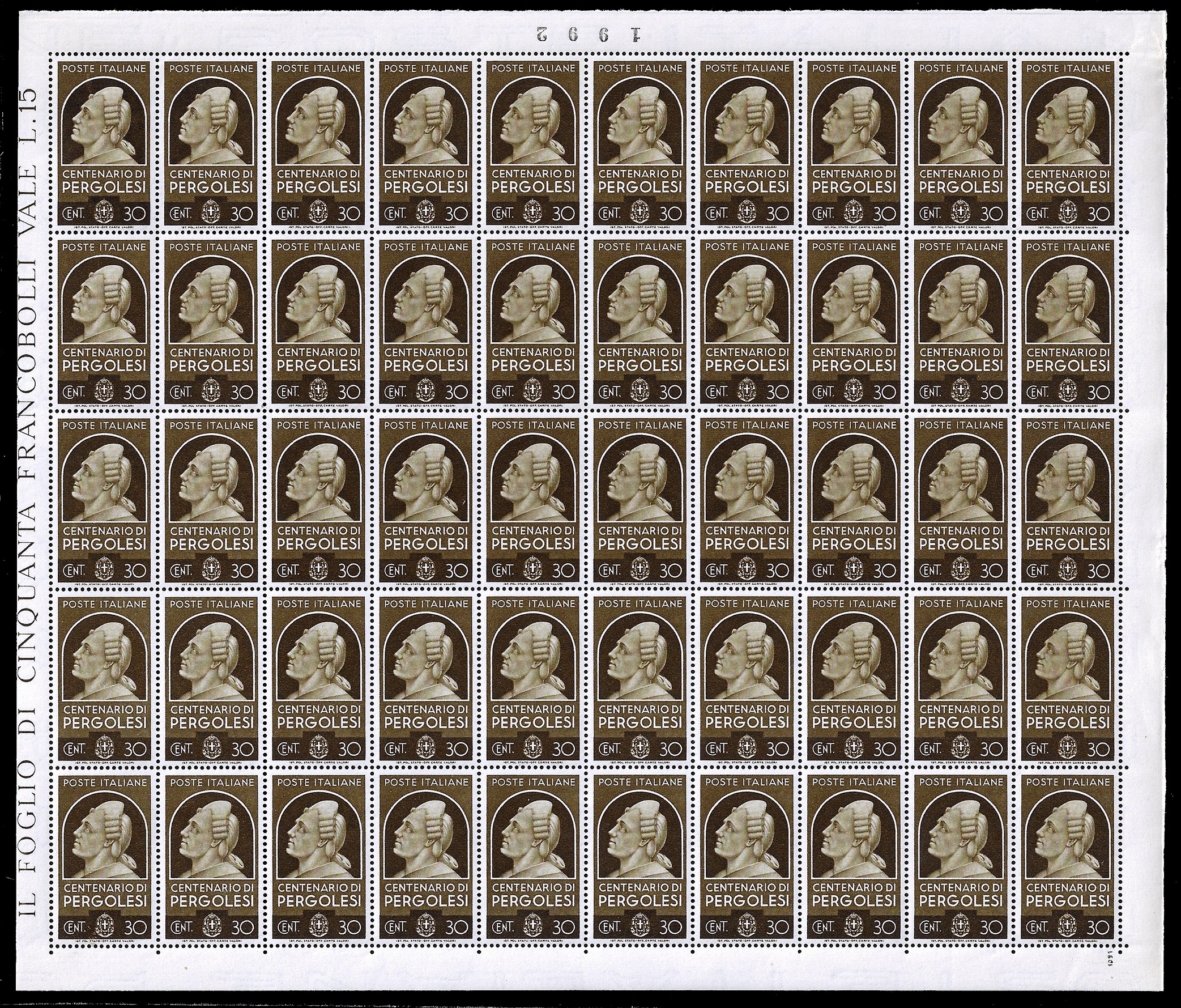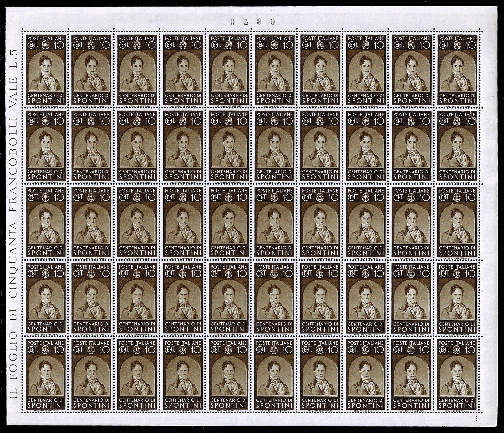 REGNO D'ITALIA 1937 - Uomini illustri, serie completa (426/435), fogli completi di 50 esemplari