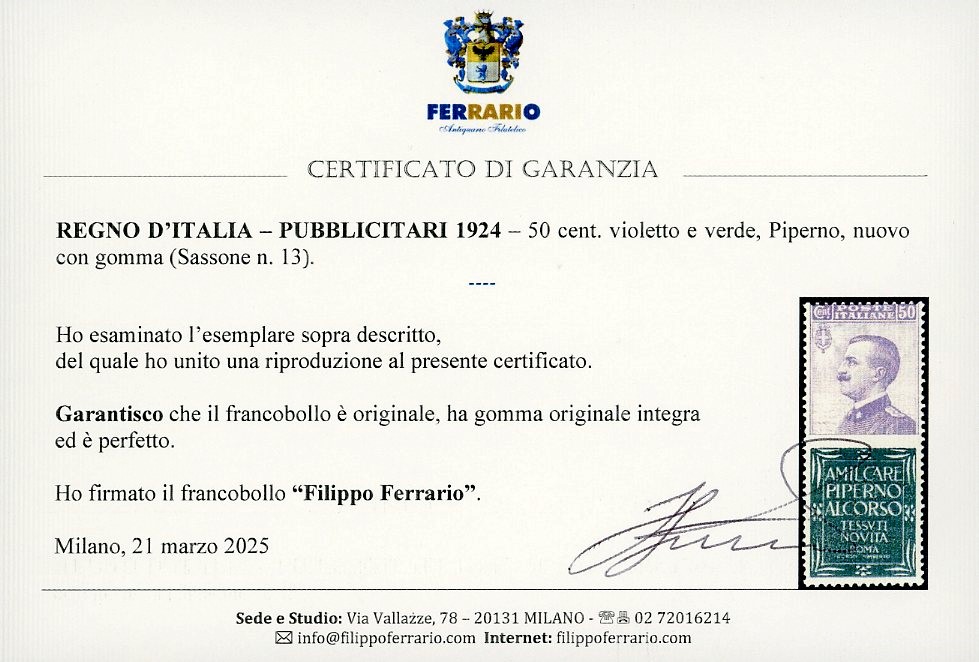 REGNO D'ITALIA PUBBLICITARI 1924 - 50 cent. Piperno (13)