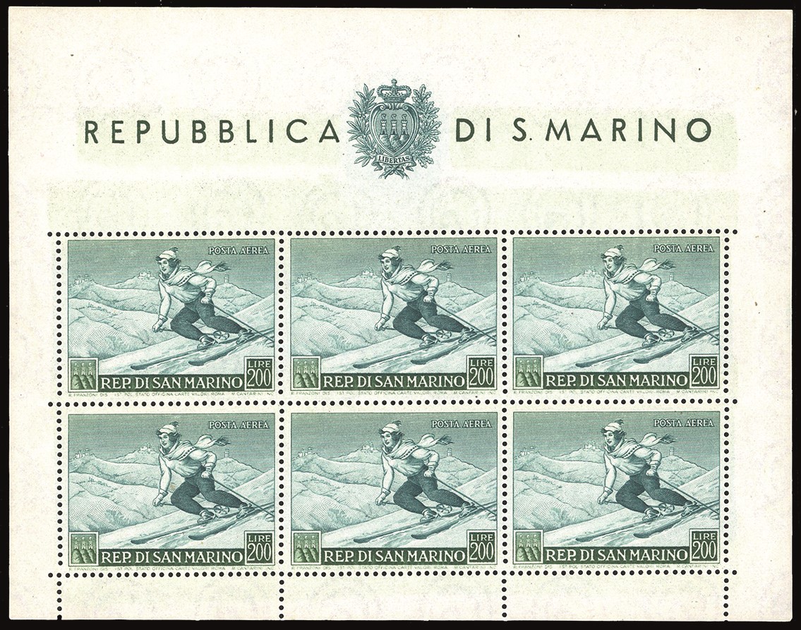 SAN MARINO - FOGLIETTI 1953 - 200 lire Sciatrice, foglietto (15)