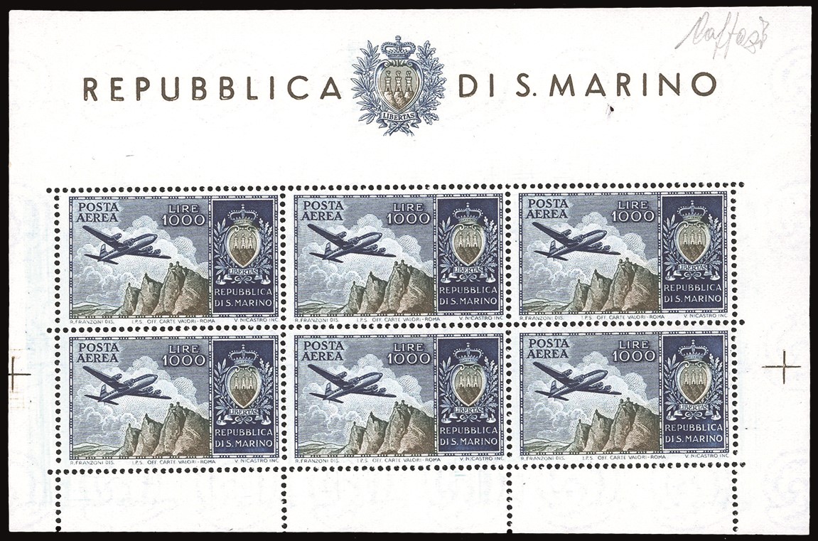 SAN MARINO - FOGLIETTI 1954 - 1.000 lire Aereo, foglietto (16)