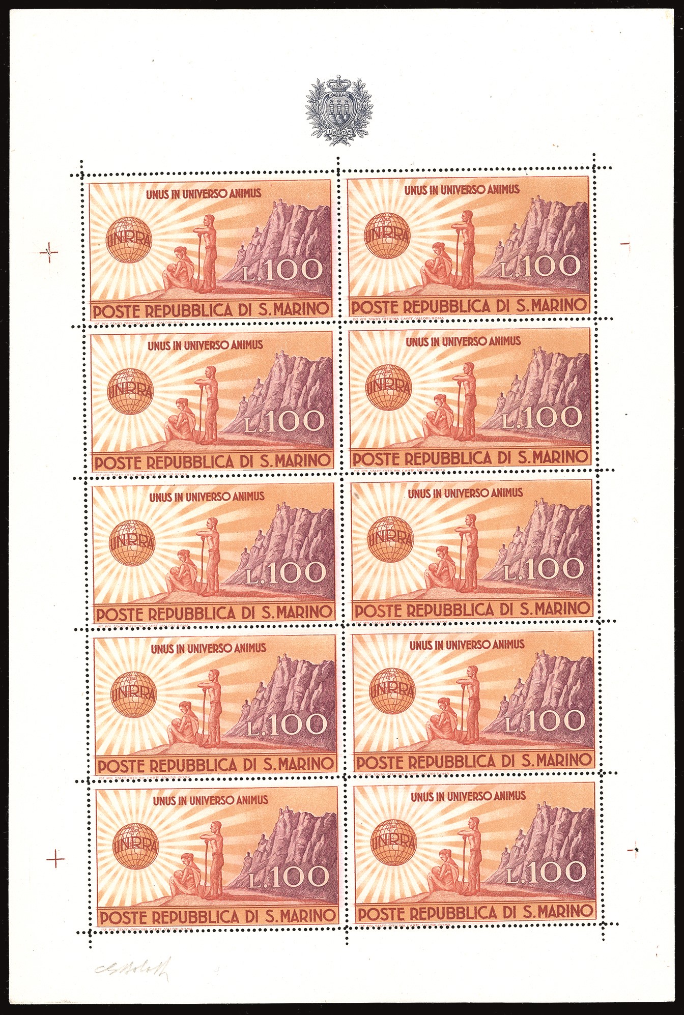 SAN MARINO - MINIFOGLI 1946 - 100 lire UNRRA, minifoglio (6)
