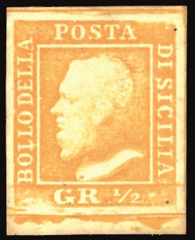 SICILIA 1859 - 1/2 grano arancio, I tavola, carta di Palermo, ritocco pos. 99 (1)