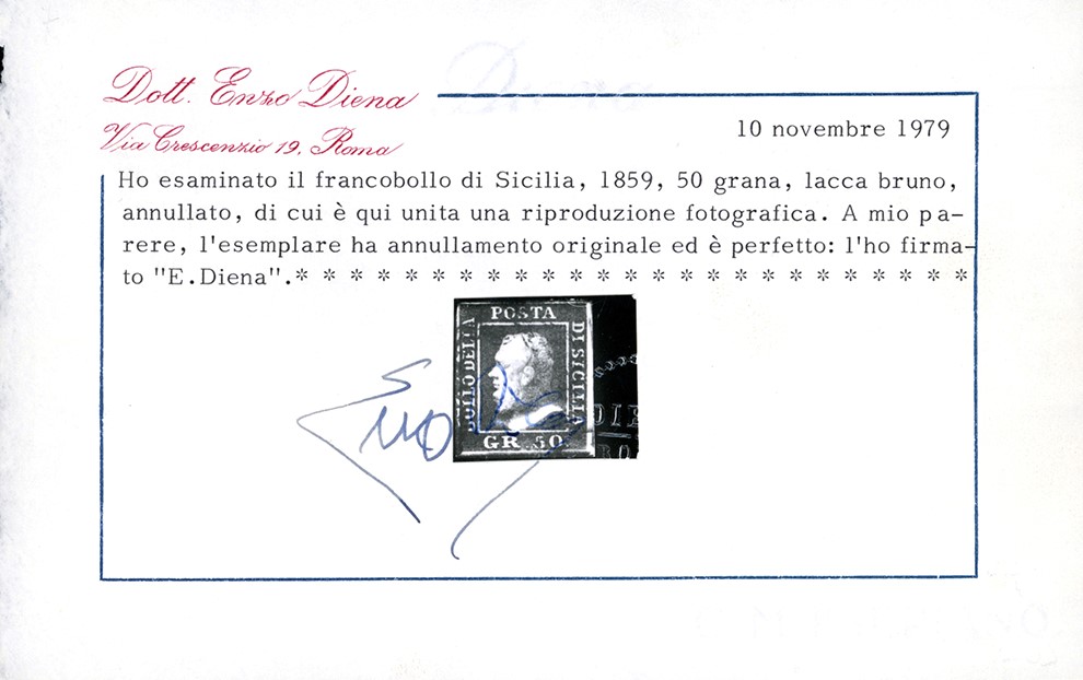 Testa d'avorio al verso, usato, perfetto. Molto bello. Fiecchi. Ferrario, cert. E.Diena e Colla. Cat. € 12.000