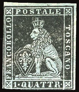 TOSCANA 1851 - 1 quattrino nero su carta azzurra, I emissione (1a)