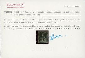 TOSCANA 1851 - 4 crazie verde azzurro su grigio, I emissione (6c)