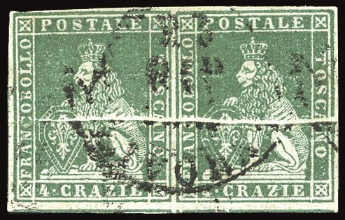 TOSCANA PLI D'ACCORDEON - COLLEZIONE DUCCIO 1851 - 4 crazie verde giallo scuro su grigio (6d)