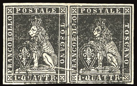 TOSCANA PLI D'ACCORDEON - COLLEZIONE DUCCIO 1857 - 1 quattrino nero, II emissione (10), coppia orizzontale, pli d'accordeon che interessa entrambi gli esemplari