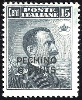 UFFICI POSTALI ALL'ESTERO - CINA PECHINO 1917 - 6 cent. su 15 cent. Michetti, soprastampa locale a mano (3)