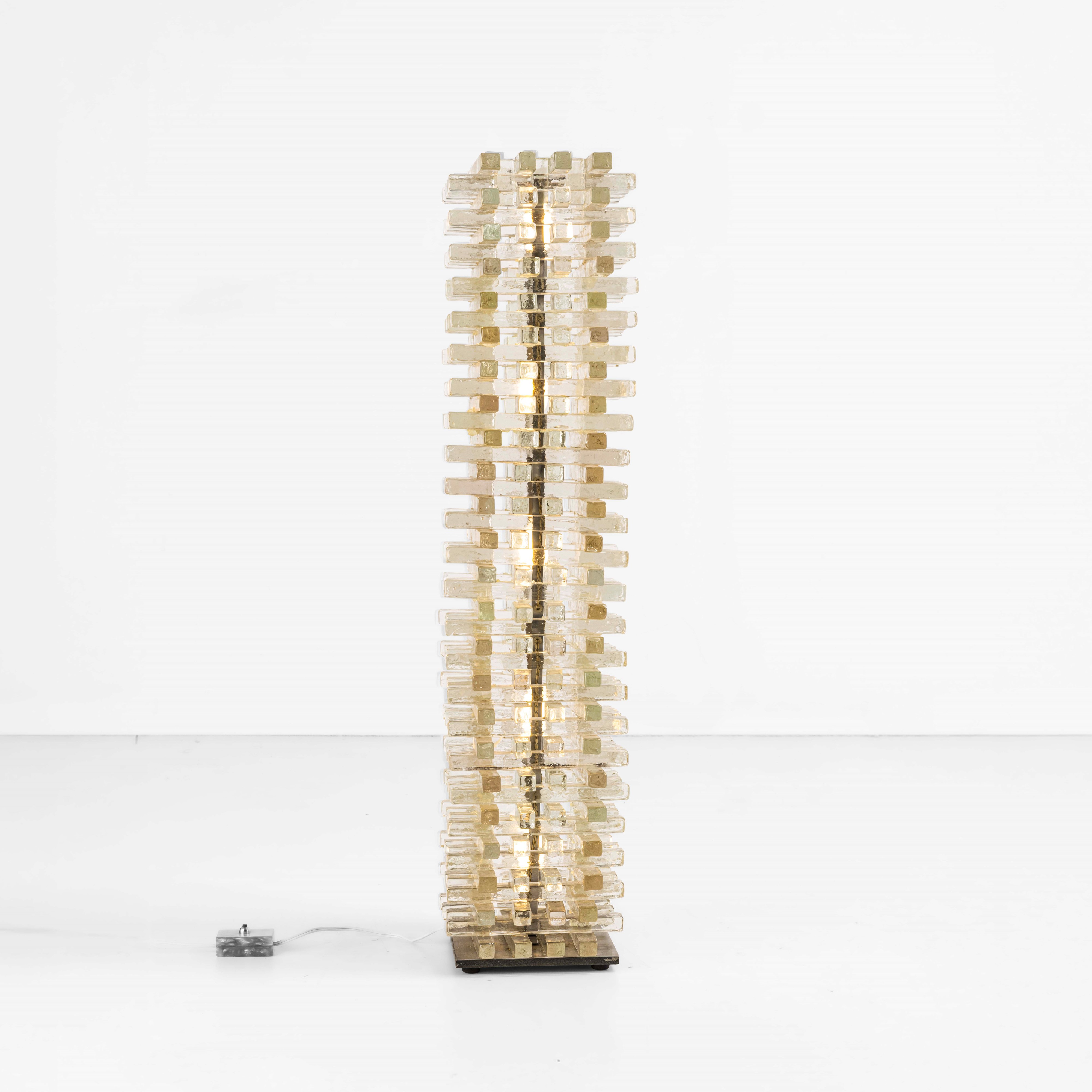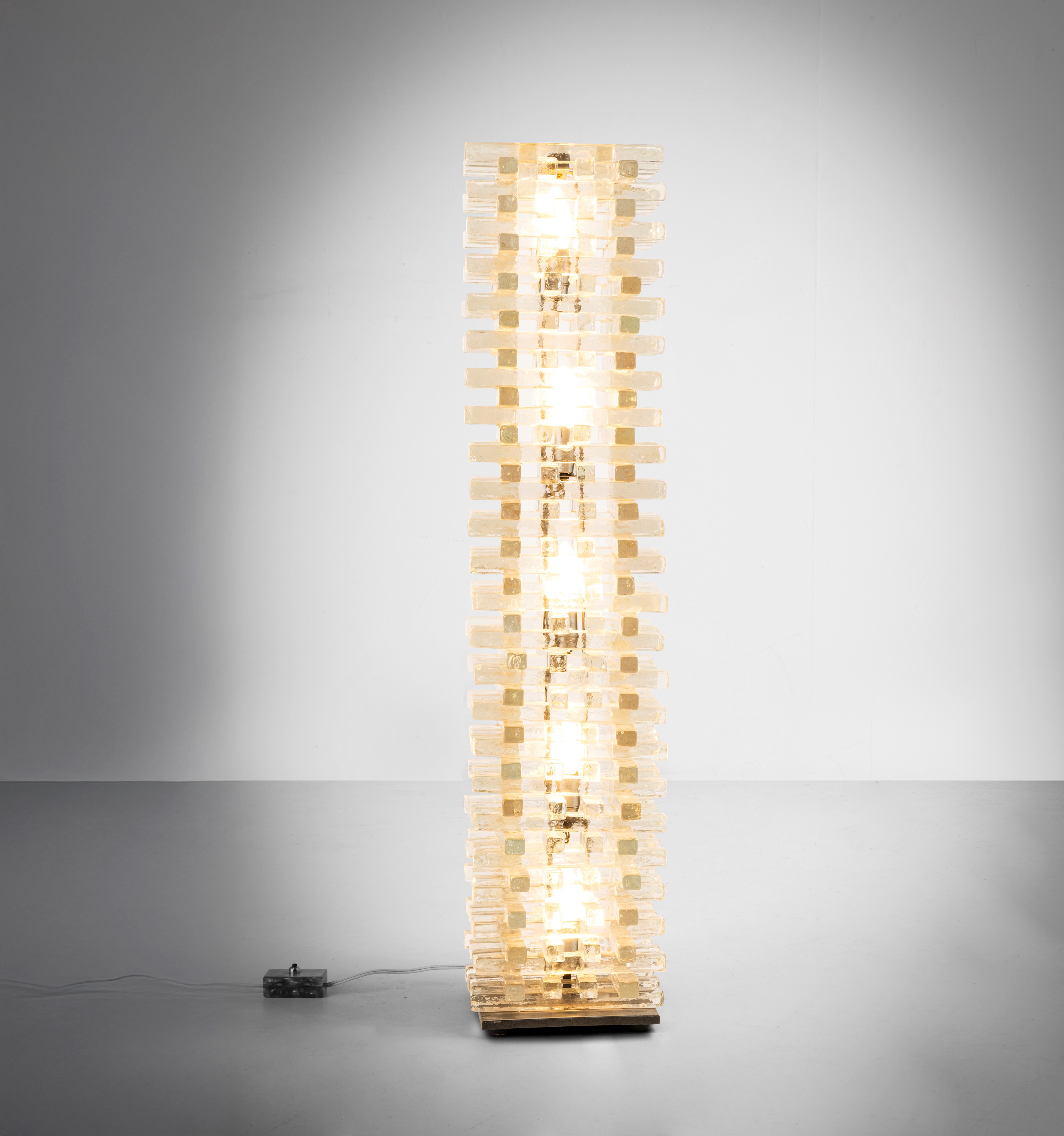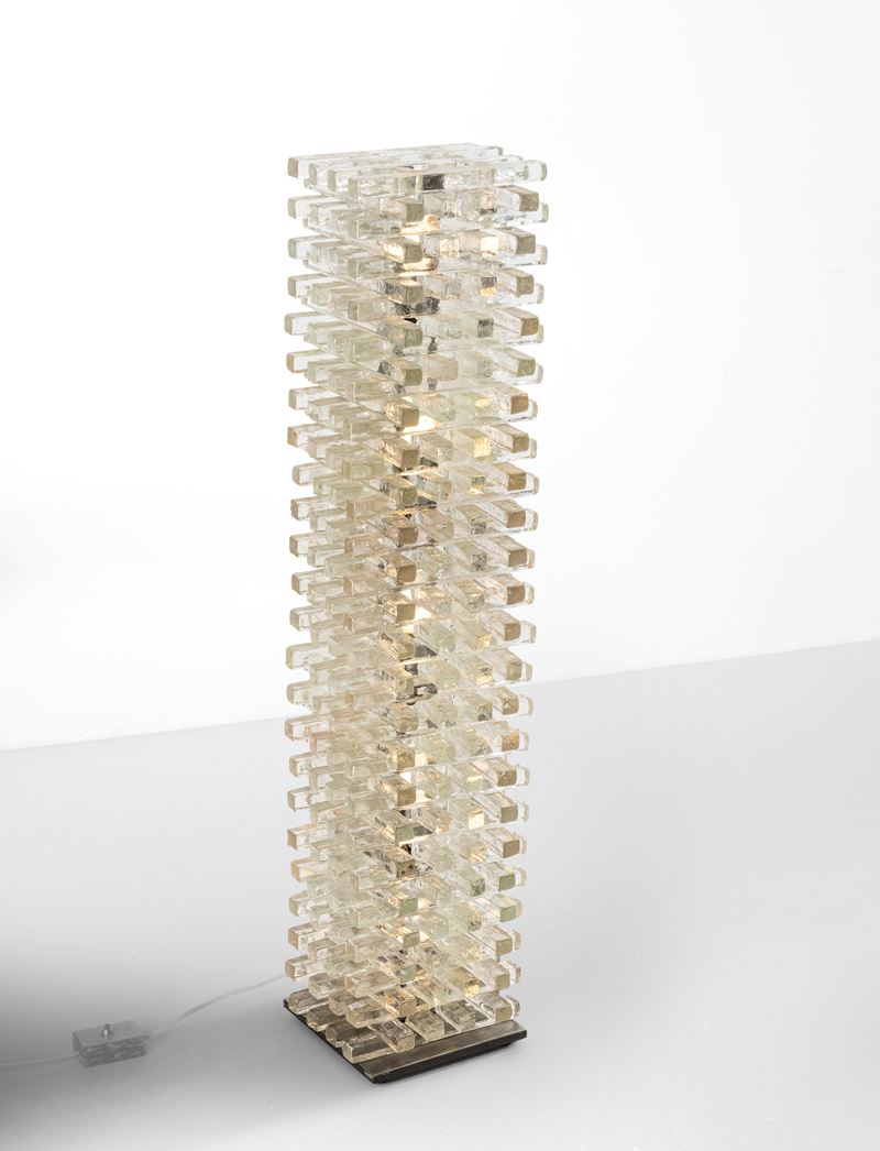 Struttura in vetro di Murano e dettagli in metallo.