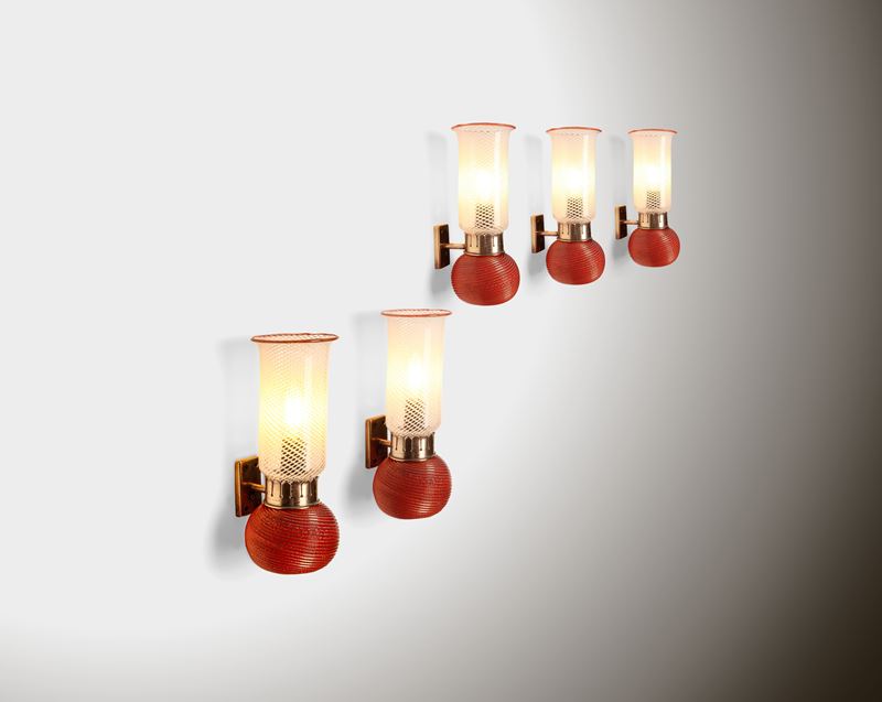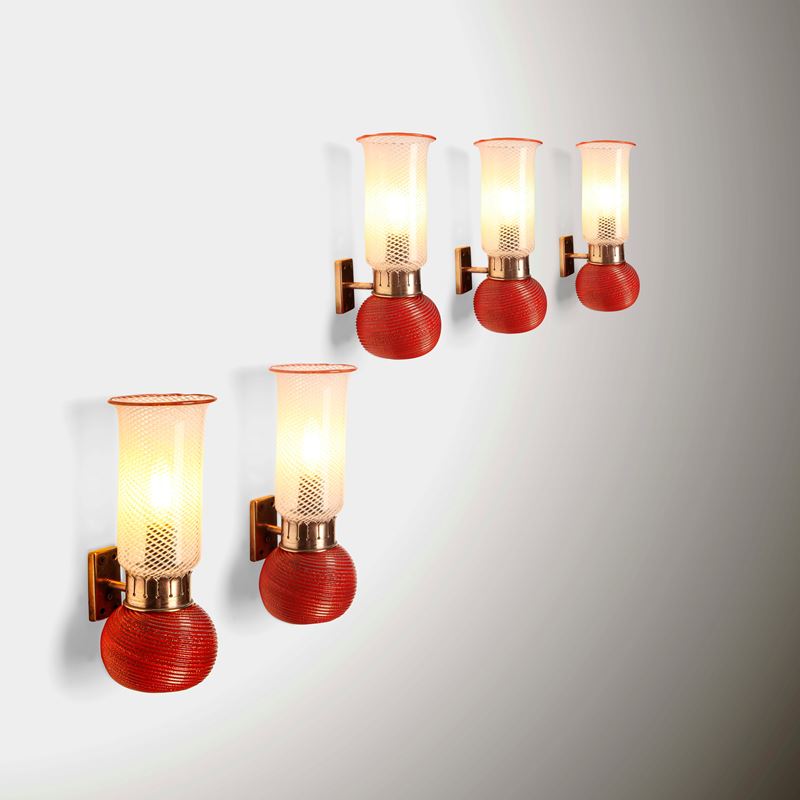 Cinque lampade a parete.