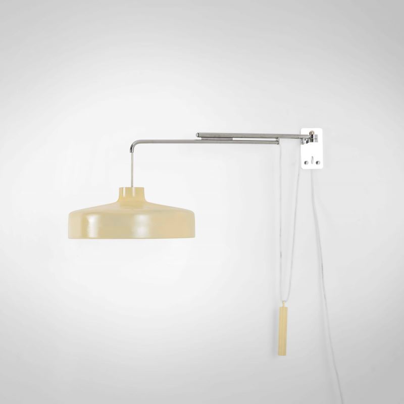Struttura in metallo cromato e diffusore in metallo laccato.