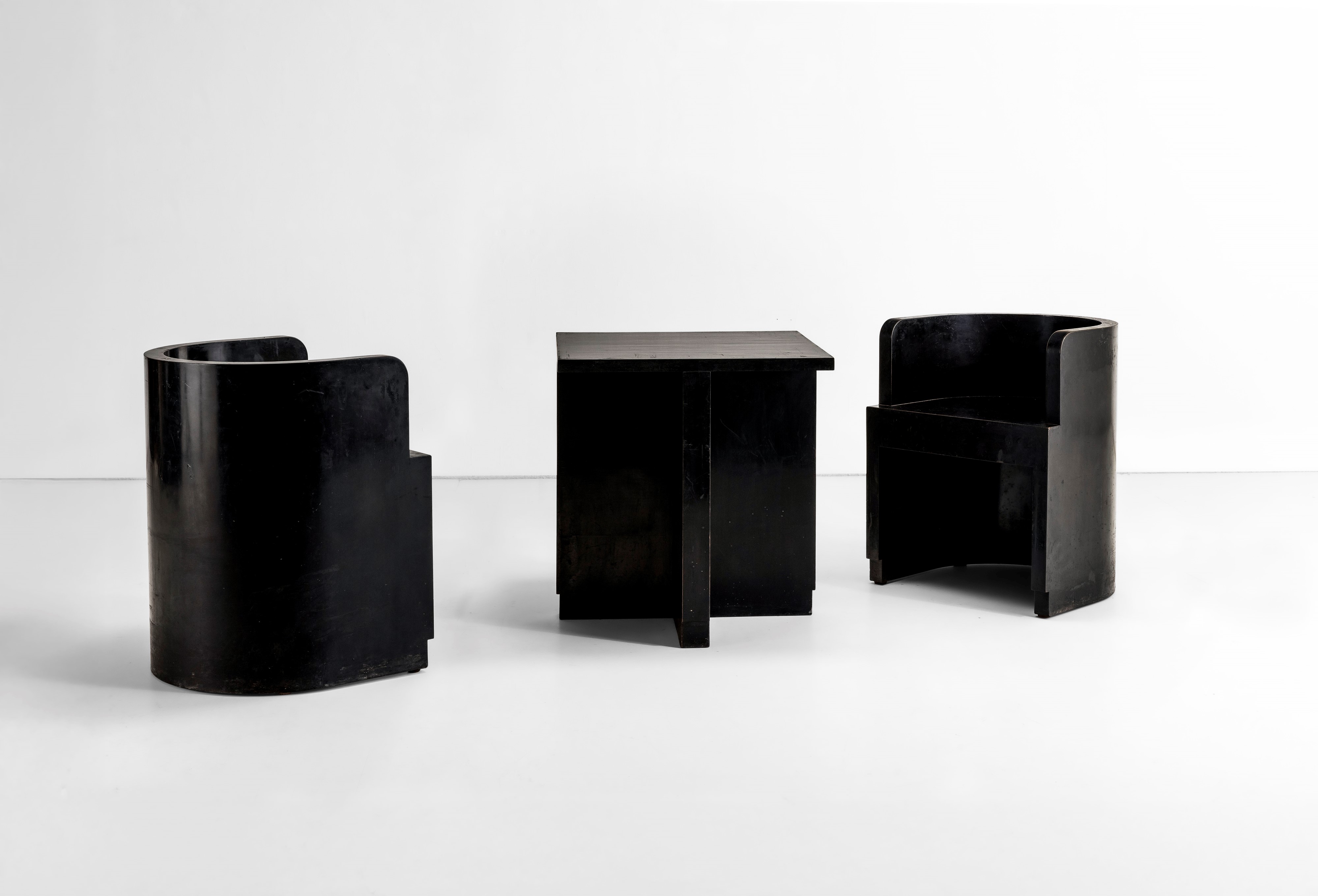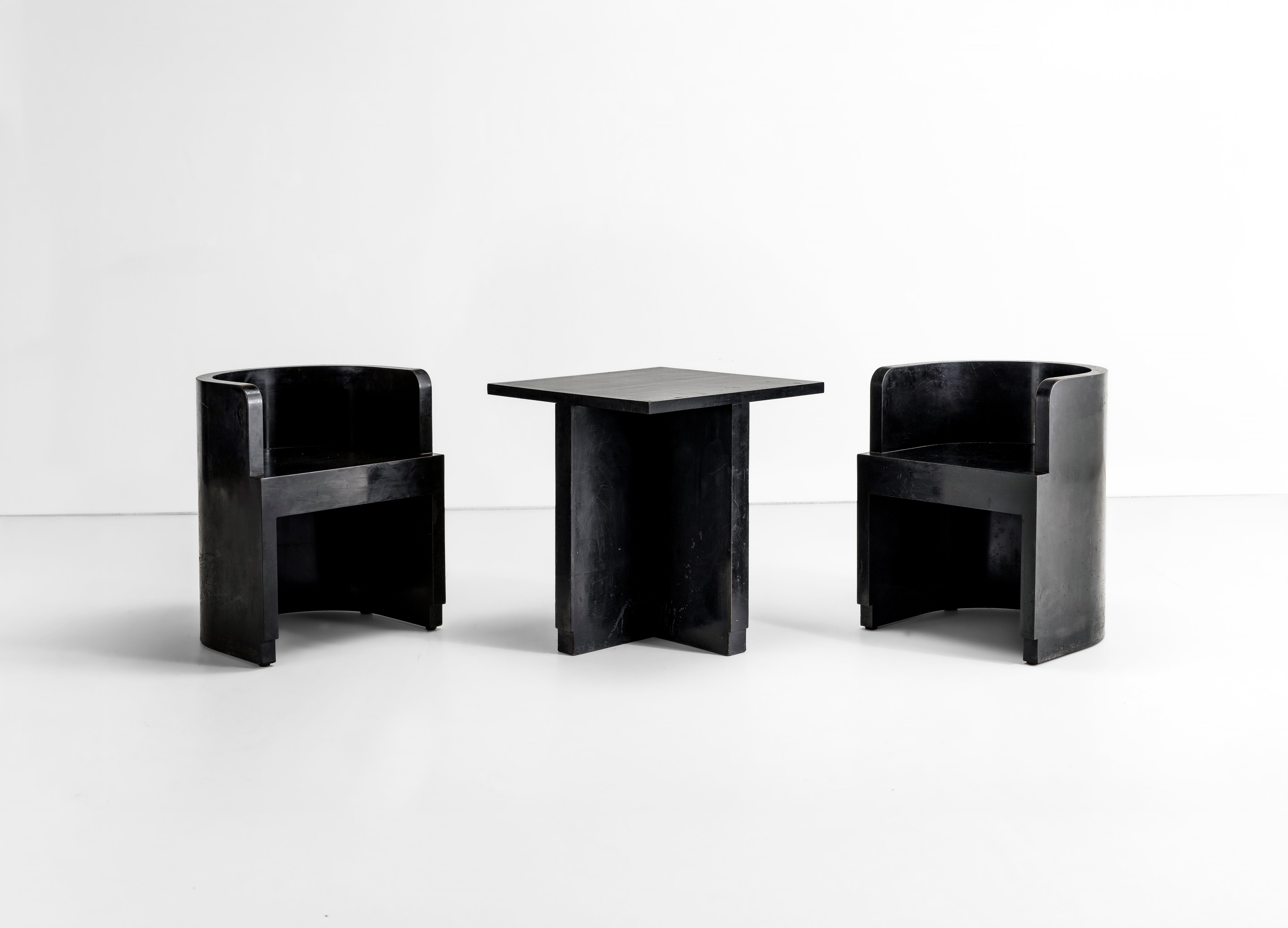 Struttura in legno rivestito in buxus ebanizzato.