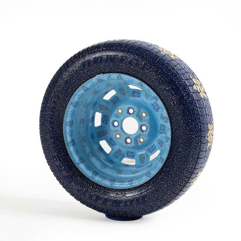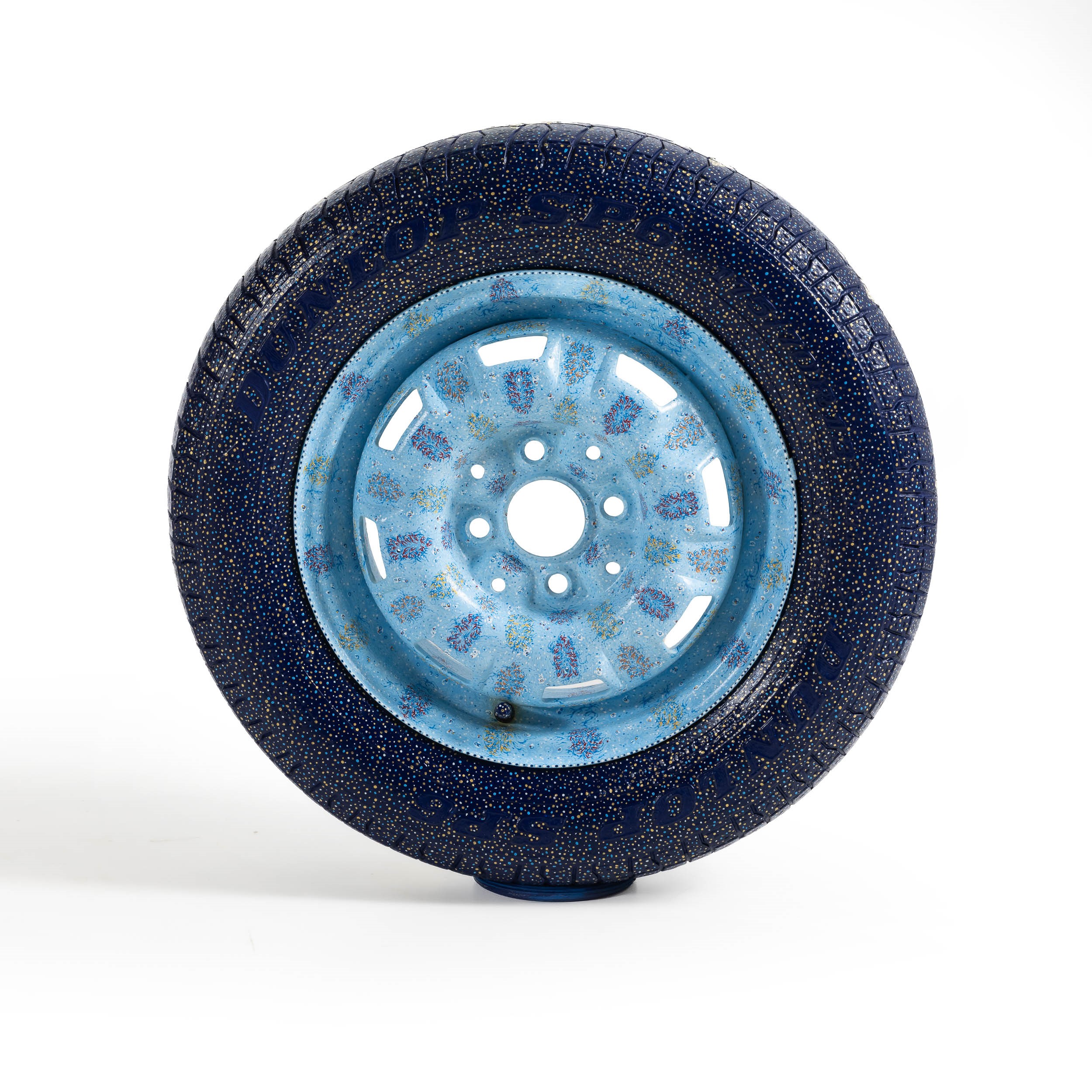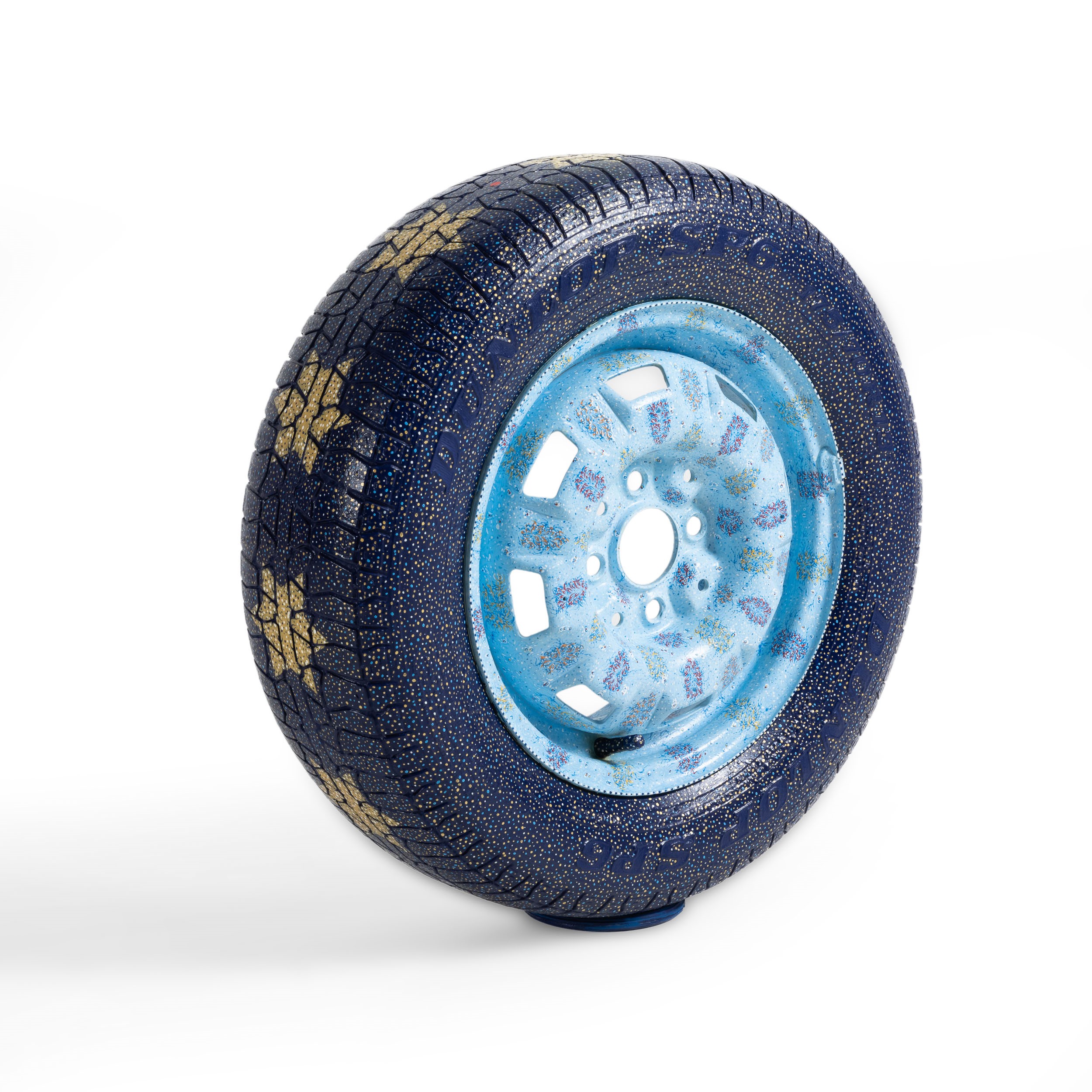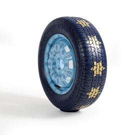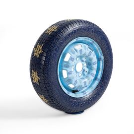 tempera e acrilico su metallo e gomma pneumatico tipo Dunlop SP6-175/70 R 13