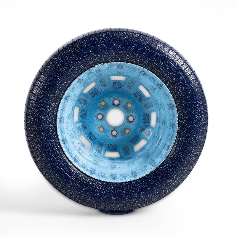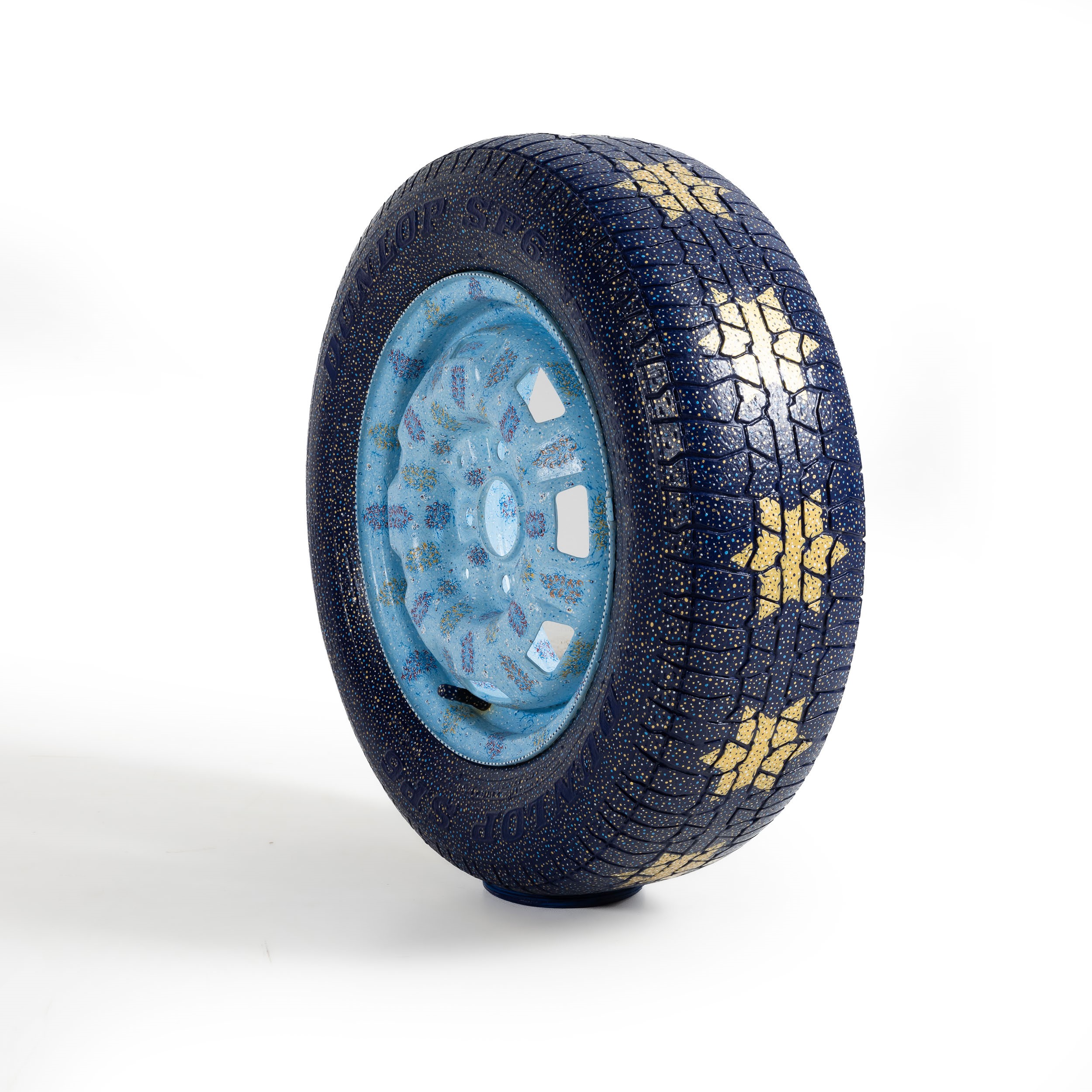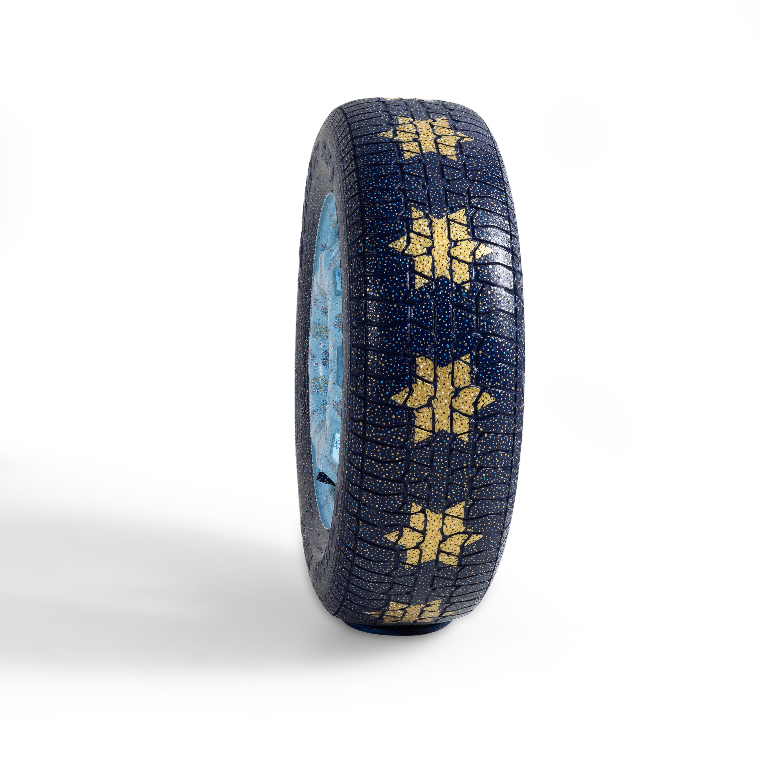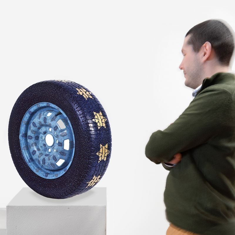 tempera e acrilico su metallo e gomma pneumatico tipo Dunlop SP6-175/70 R 13
