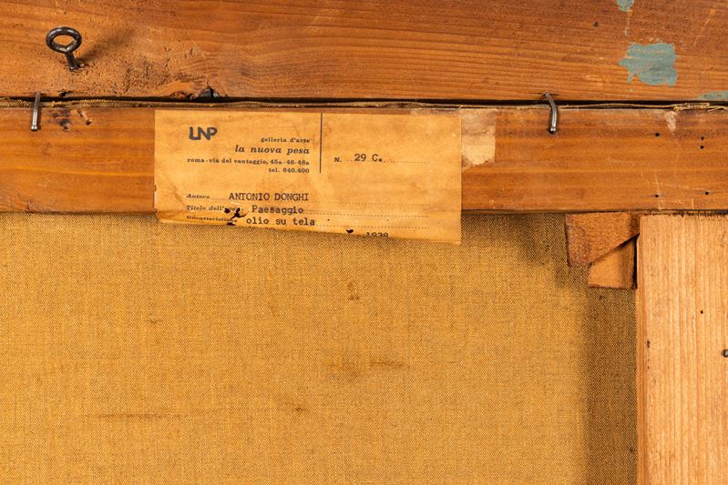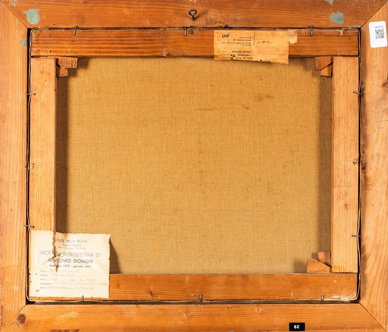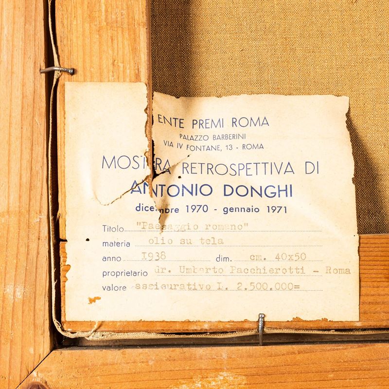 etichetta al retro della Mostra retrospettiva di Antonio Donghi, Roma, dicembre 1970 - gennaio 1971