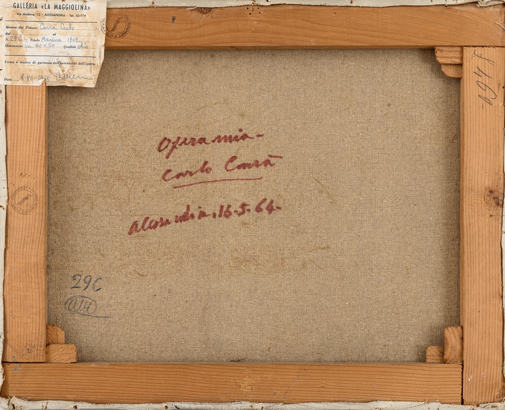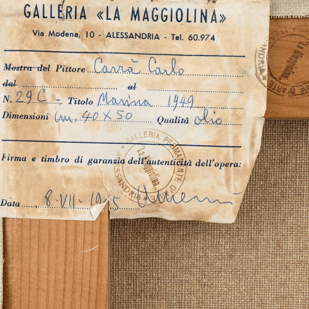 etichetta e timbro al retro della Galleria La Maggiolina, Alessandria