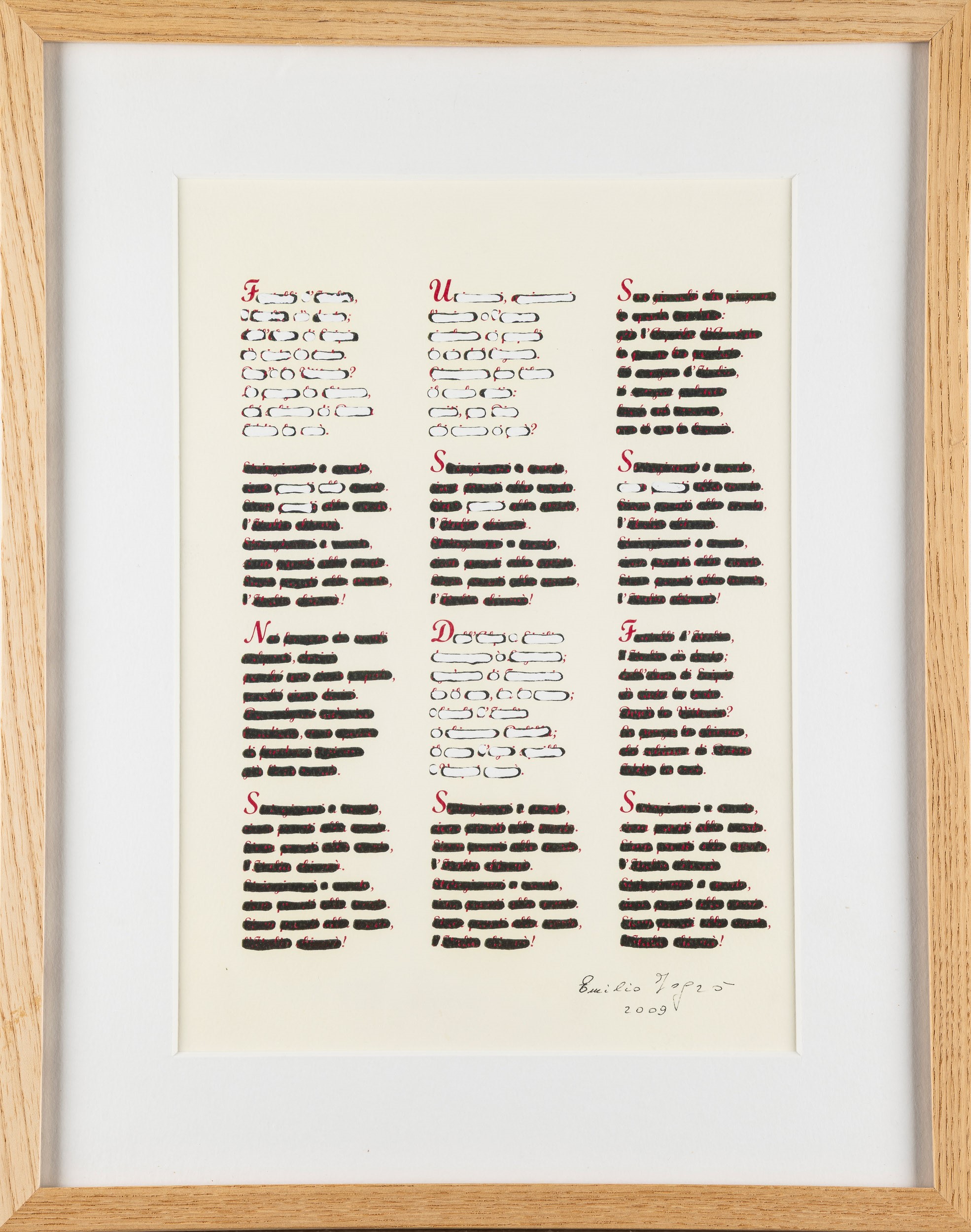 Opera registrata presso l'Archivio Emilio Isgrò, Milano con il n. 0225 in data 27 luglio 2023 e accompagnata da certificato di autenticità