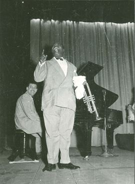 lotto di quattro fotografie Louis Armstrong a Genova , 1952, stampa successiva