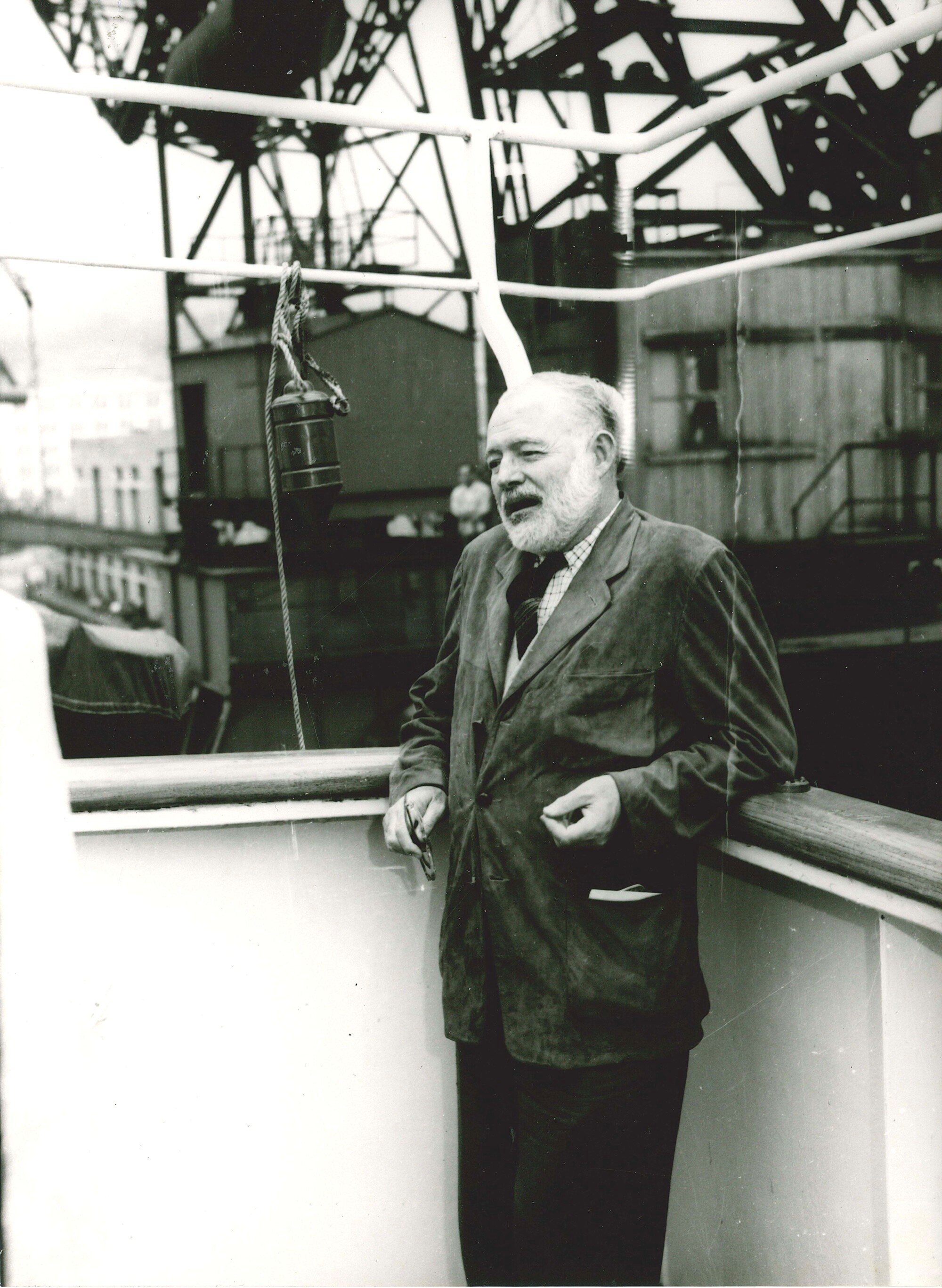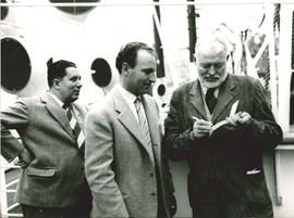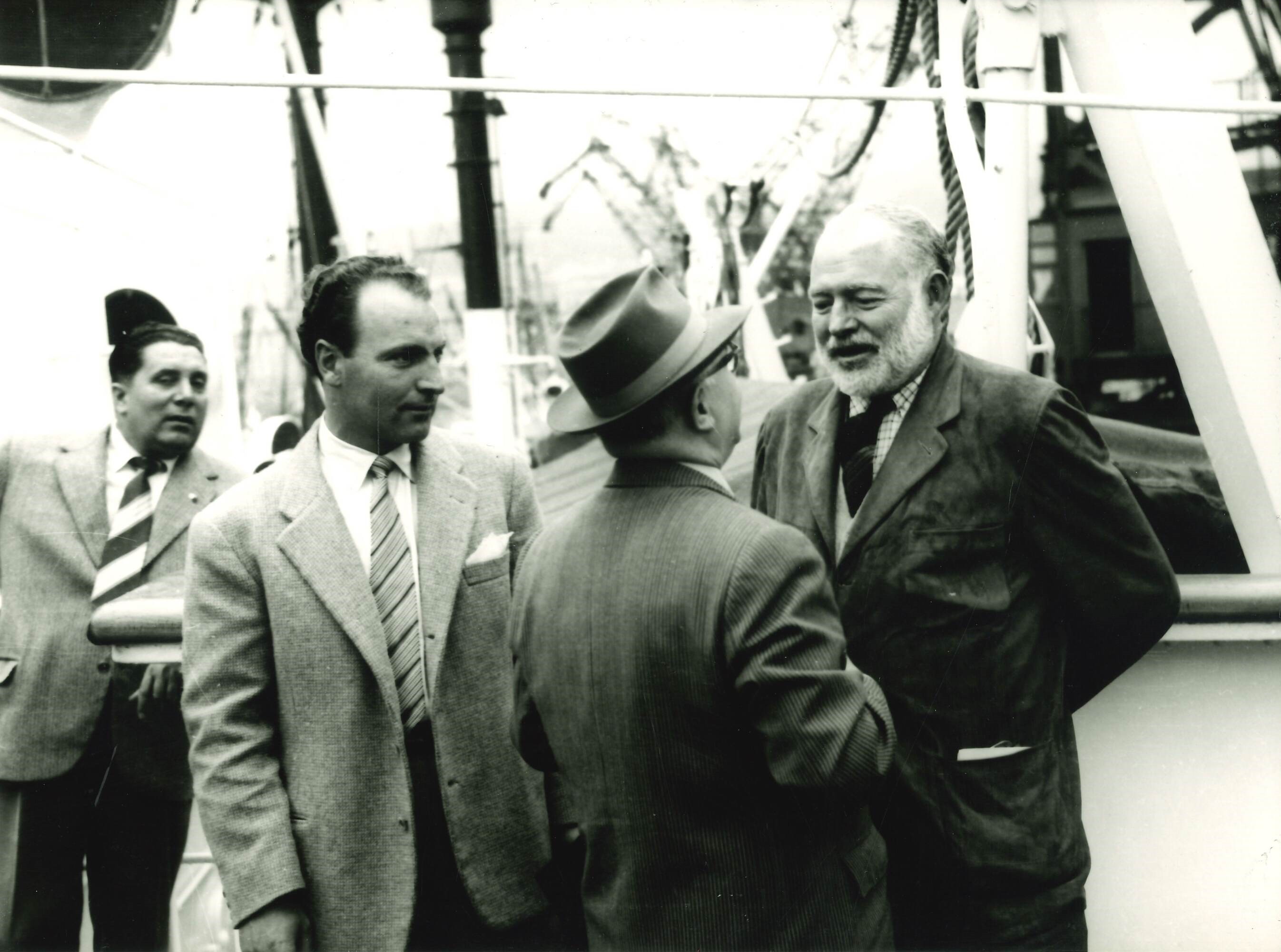 lotto di tre fotografie Ernest Hemingway a Genova , 1954, stampa successiva