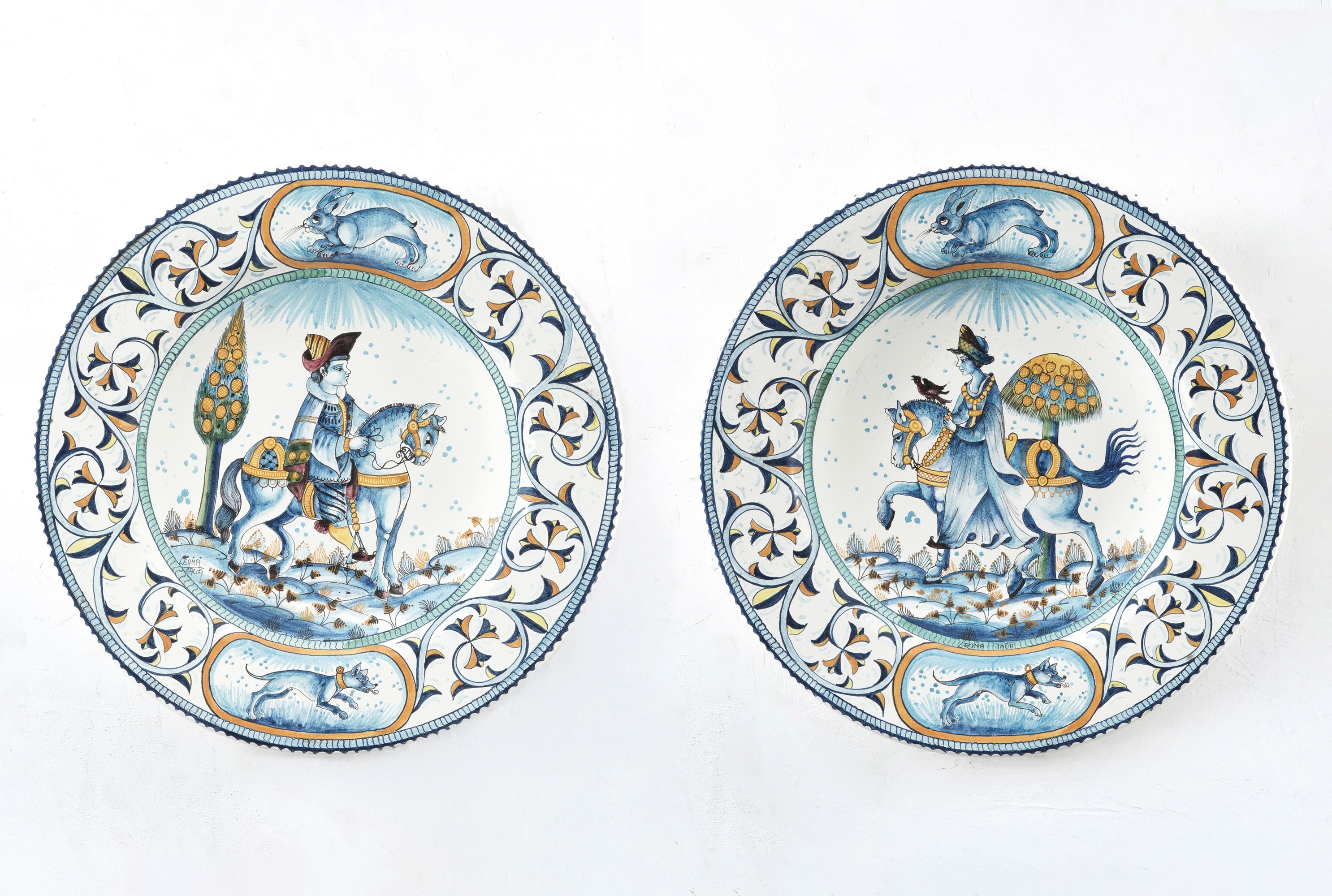 Coppia di grandi piatti da parata. Toscana, XX secolo.