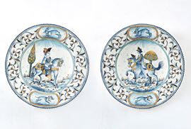 Coppia di grandi piatti da parata.