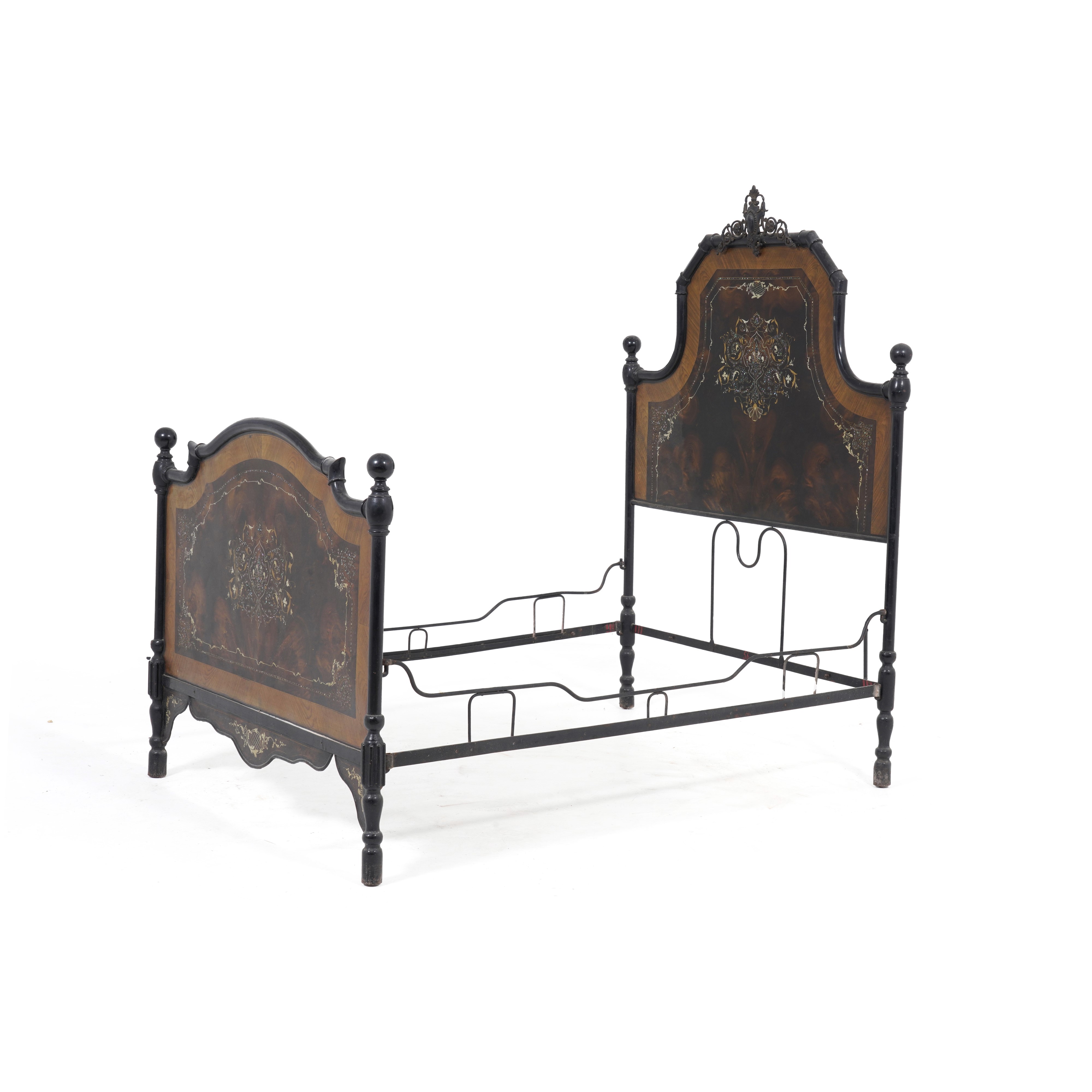 Letto in ferro decorato con eleganti inserti in madreperla. Fine XIX secolo