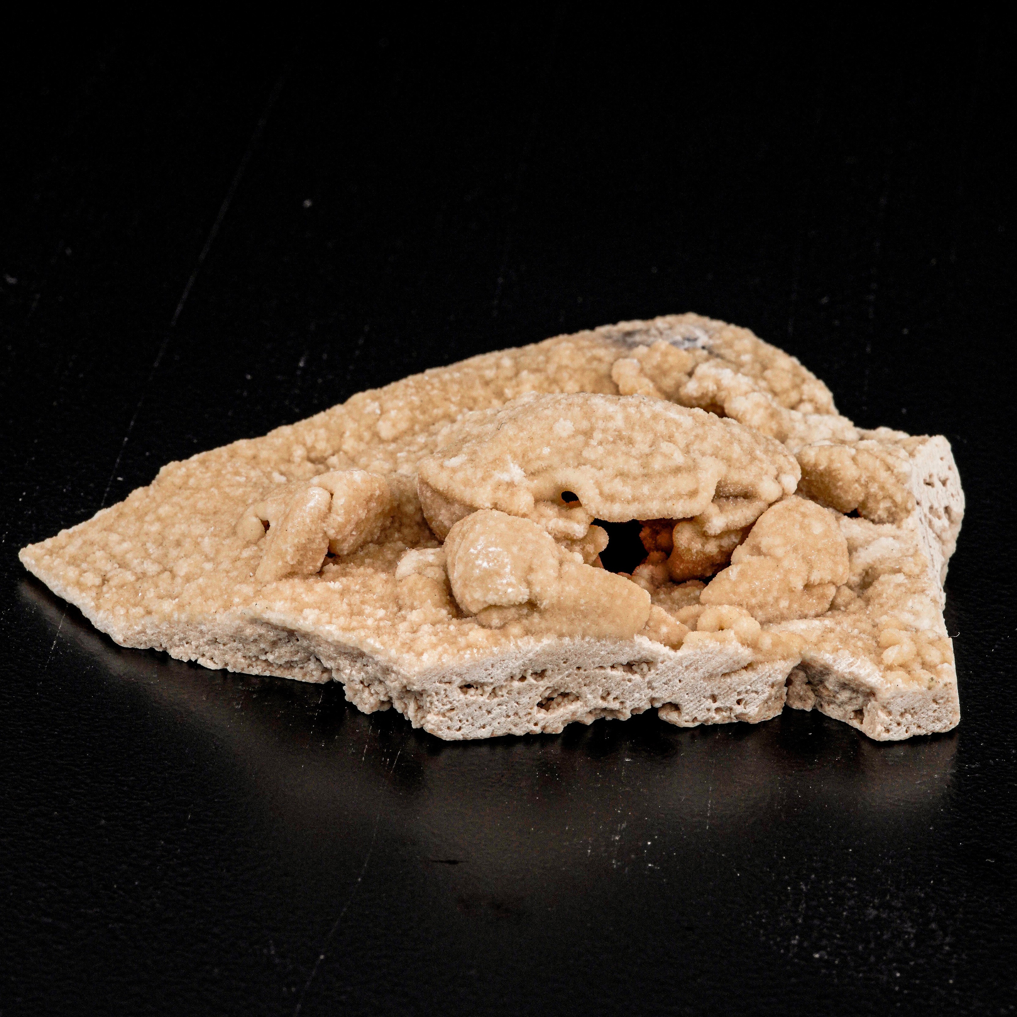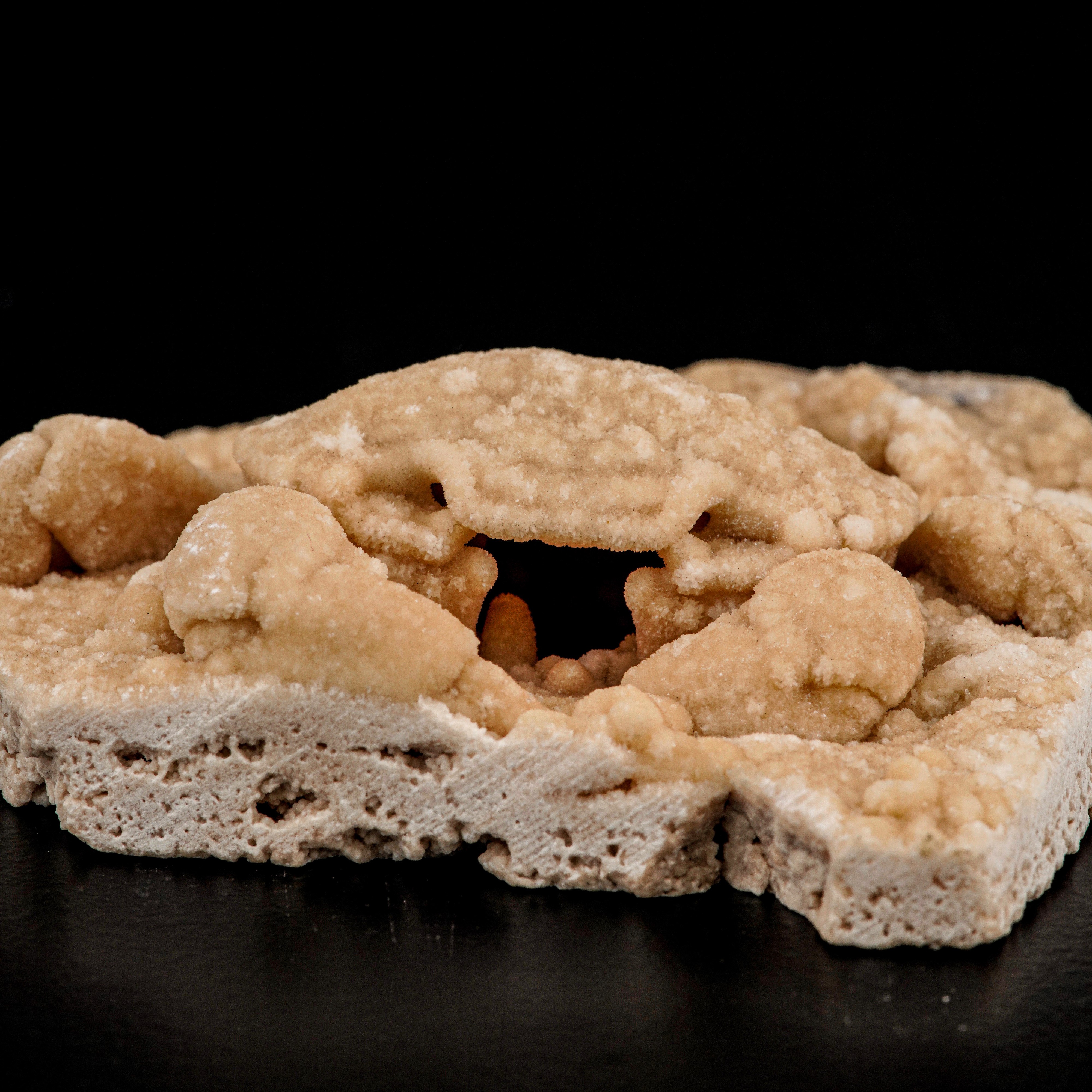 Si tratta di uno spettacolare granchio fossile d'acqua dolce (Potamon sp) conservato nel travertino proveniente dal bacino di Denizli, nella Turchia sud-occidentale. Il granchio è largo 6,5 cm e presenta una conservazione tridimensionale incredibilmente dettagliata. È completamente rivestito e conservato come un calco esterno tridimensionale all'interno di una cavità naturale di una matrice di travertino bianco. È ricoperto da una pellicola inorganica di carbonato di calcio.