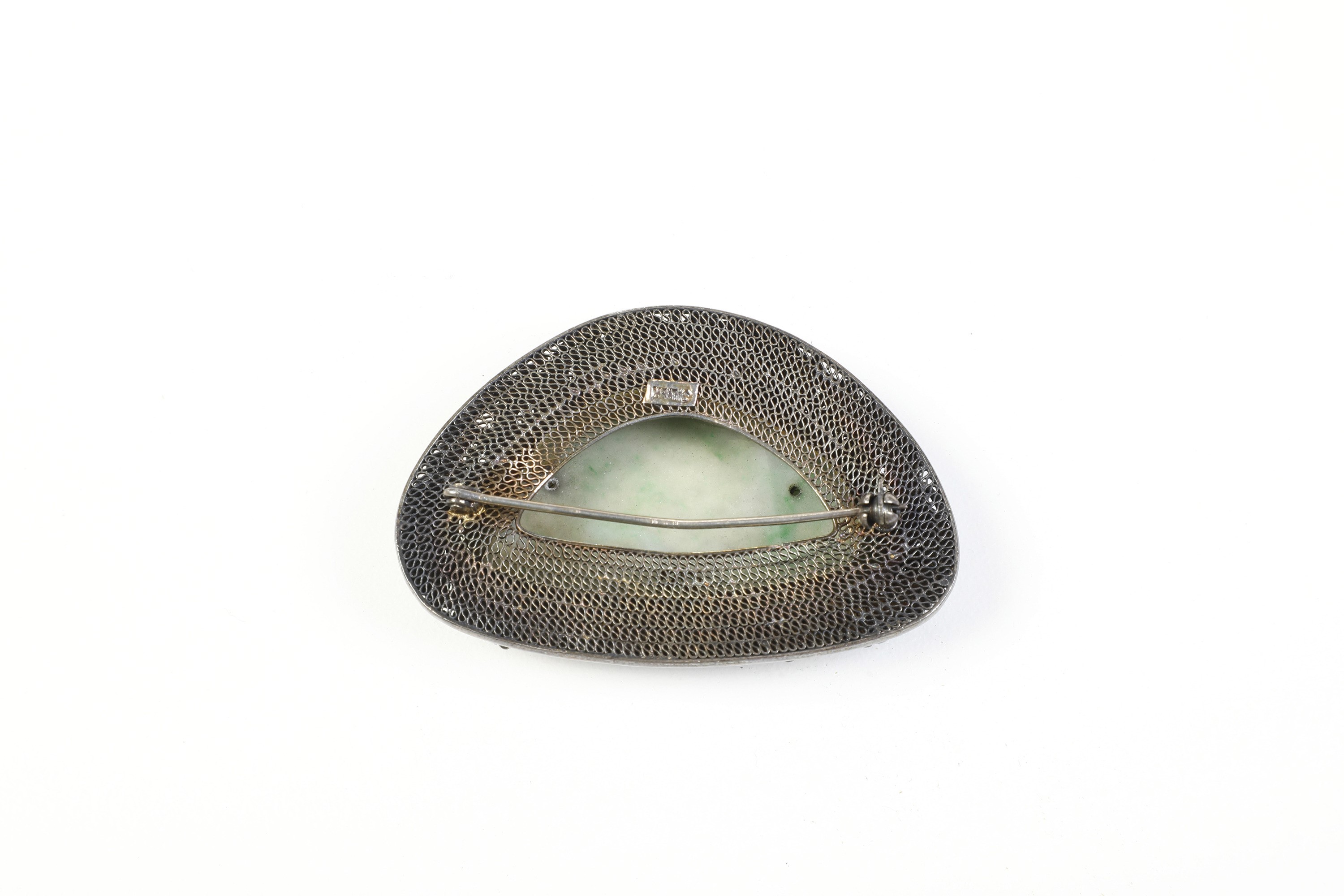 Spilla in giada con montatura in argento parzialmente smaltato