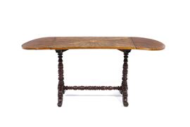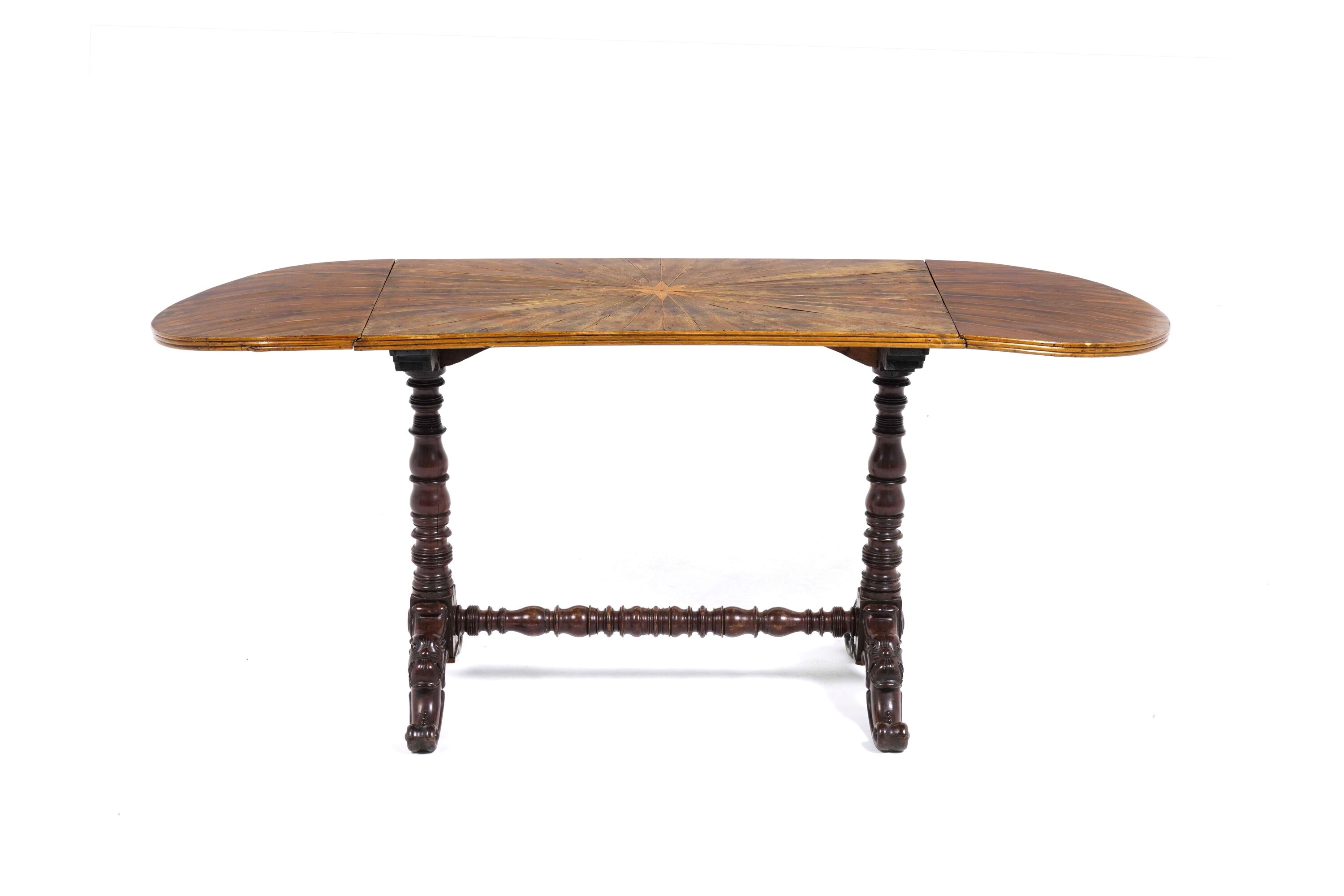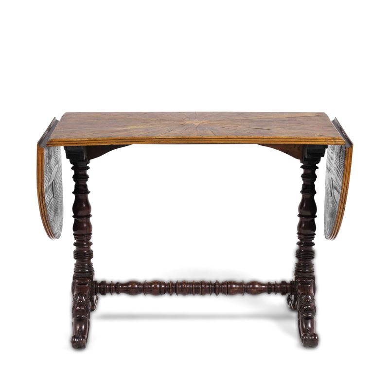 Tavolo in legno intagliato con piano ad alette. Fine XIX-inizi XX secolo