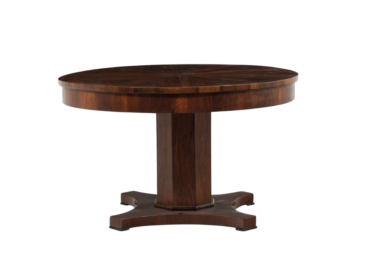 Tavolo lastonato con gamba a colonna sfaccettata. XIX secolo