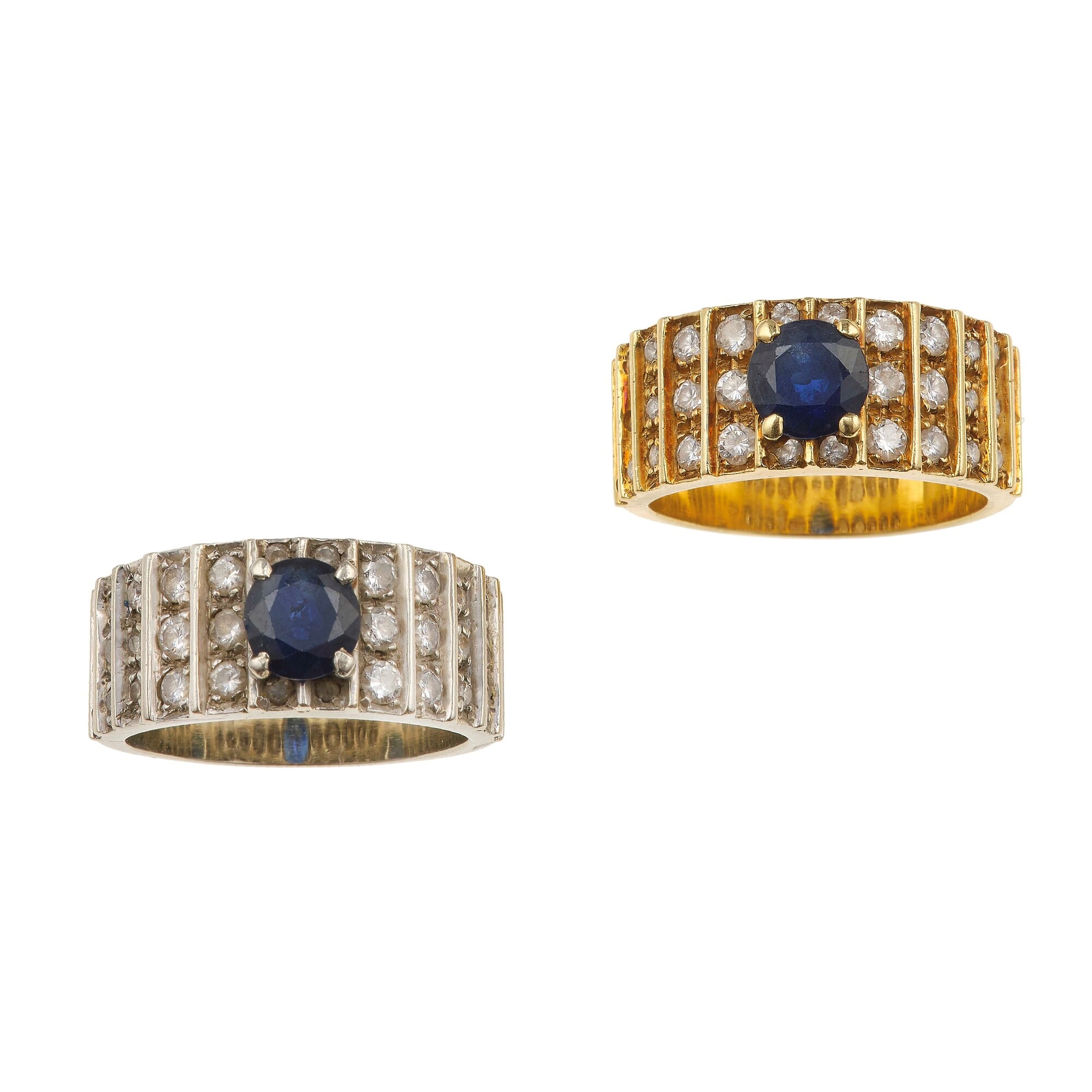 Lotto composto da due anelli con zaffiri centrali e piccoli diamanti a contorno