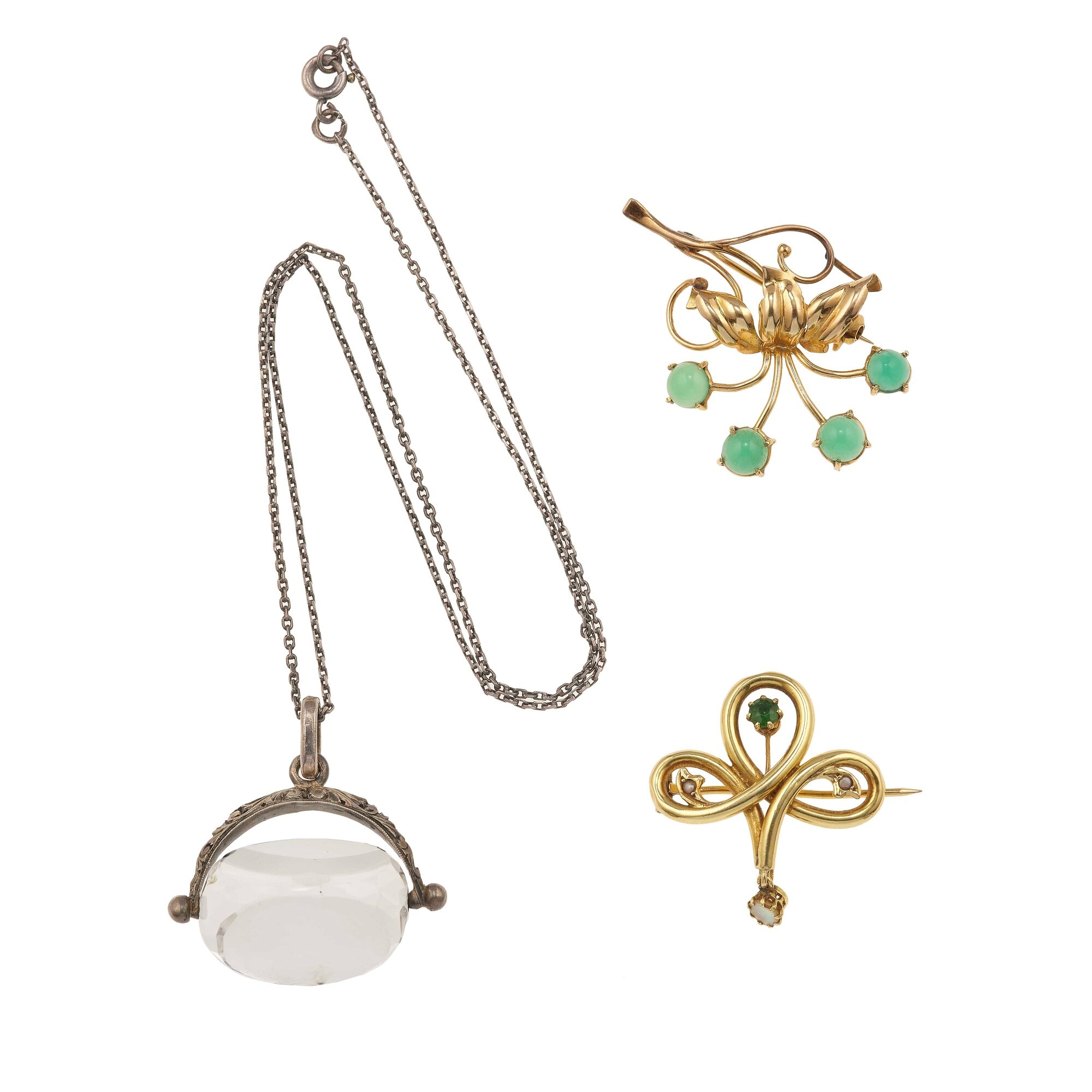 Lotto composto da un pendente con cristallo di rocca e due due spille