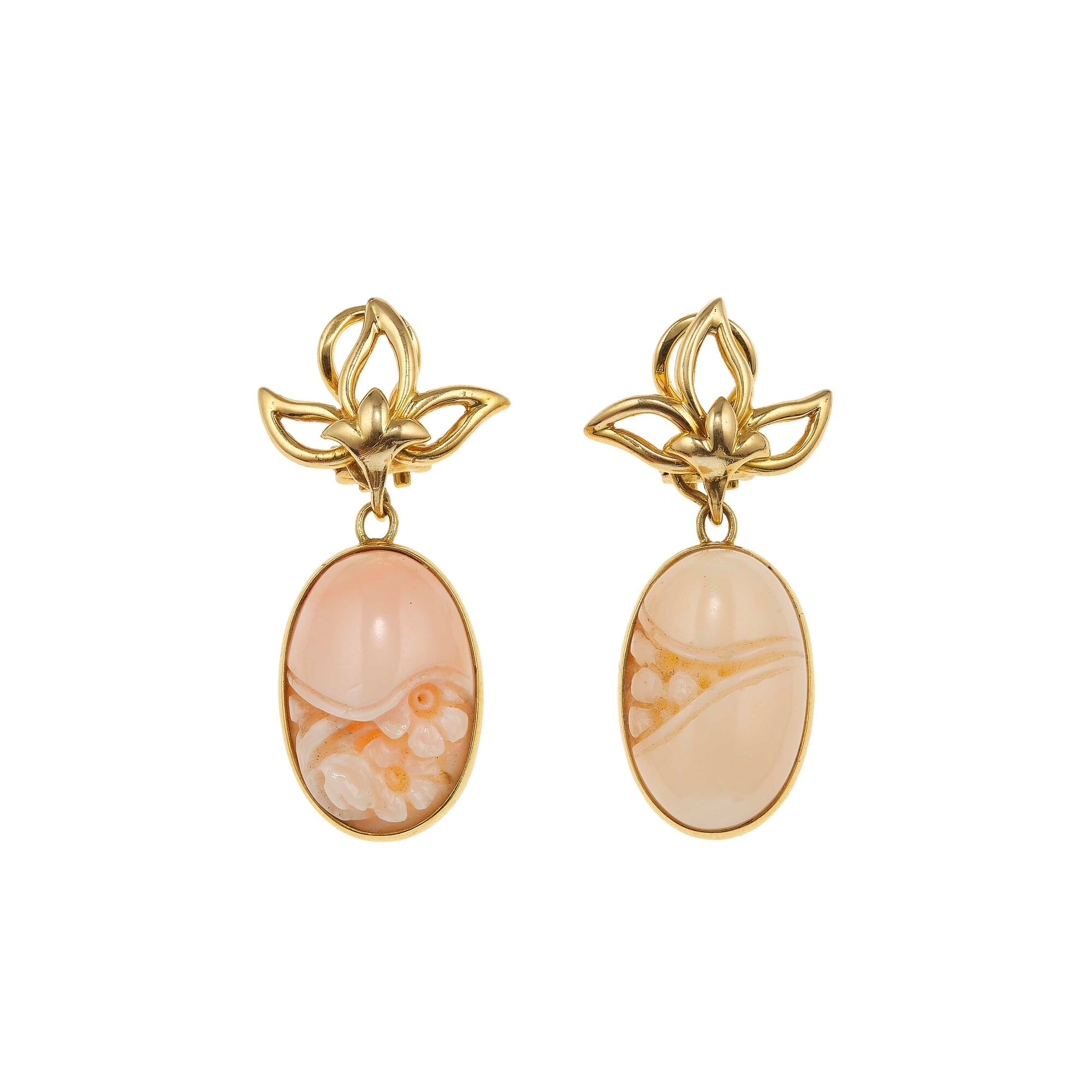 Orecchini pendenti con corallo inciso