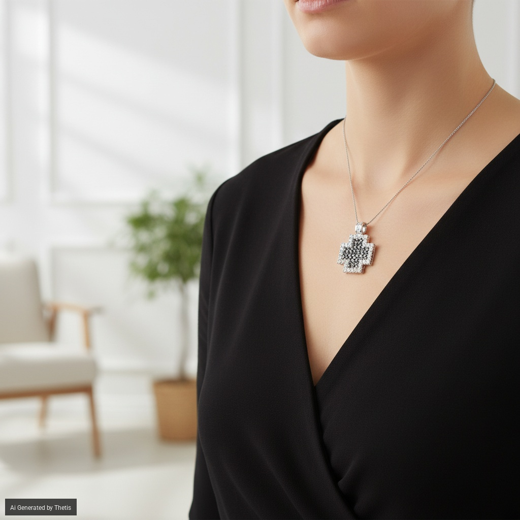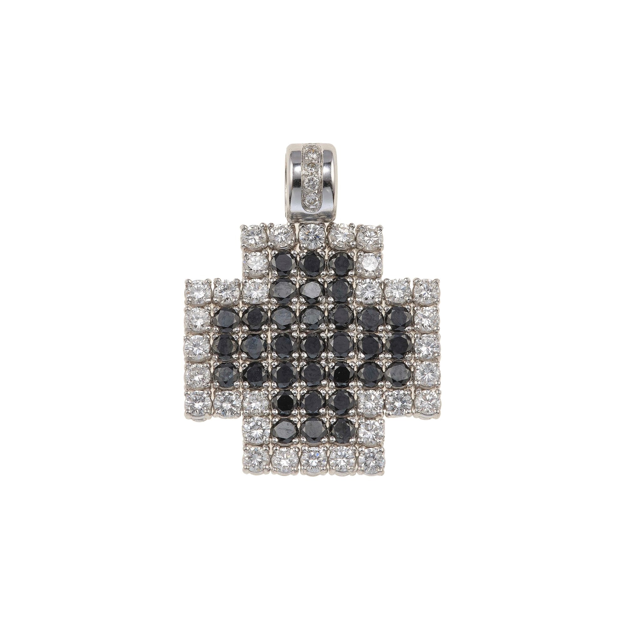 Pendente "Croce" con diamanti taglio brillante bianchi e neri
