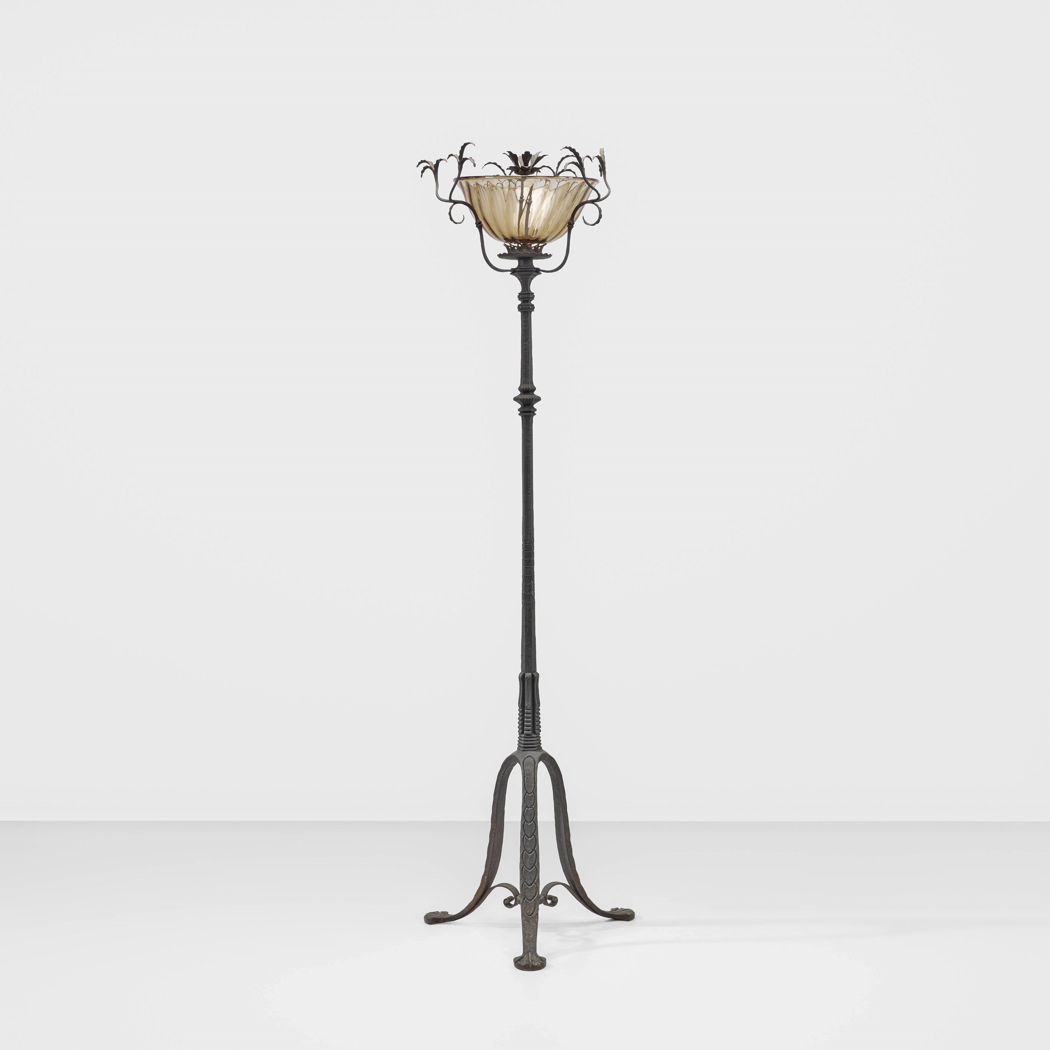 Struttura in ferro battuto e inciso, vetro di Murano soffiato.