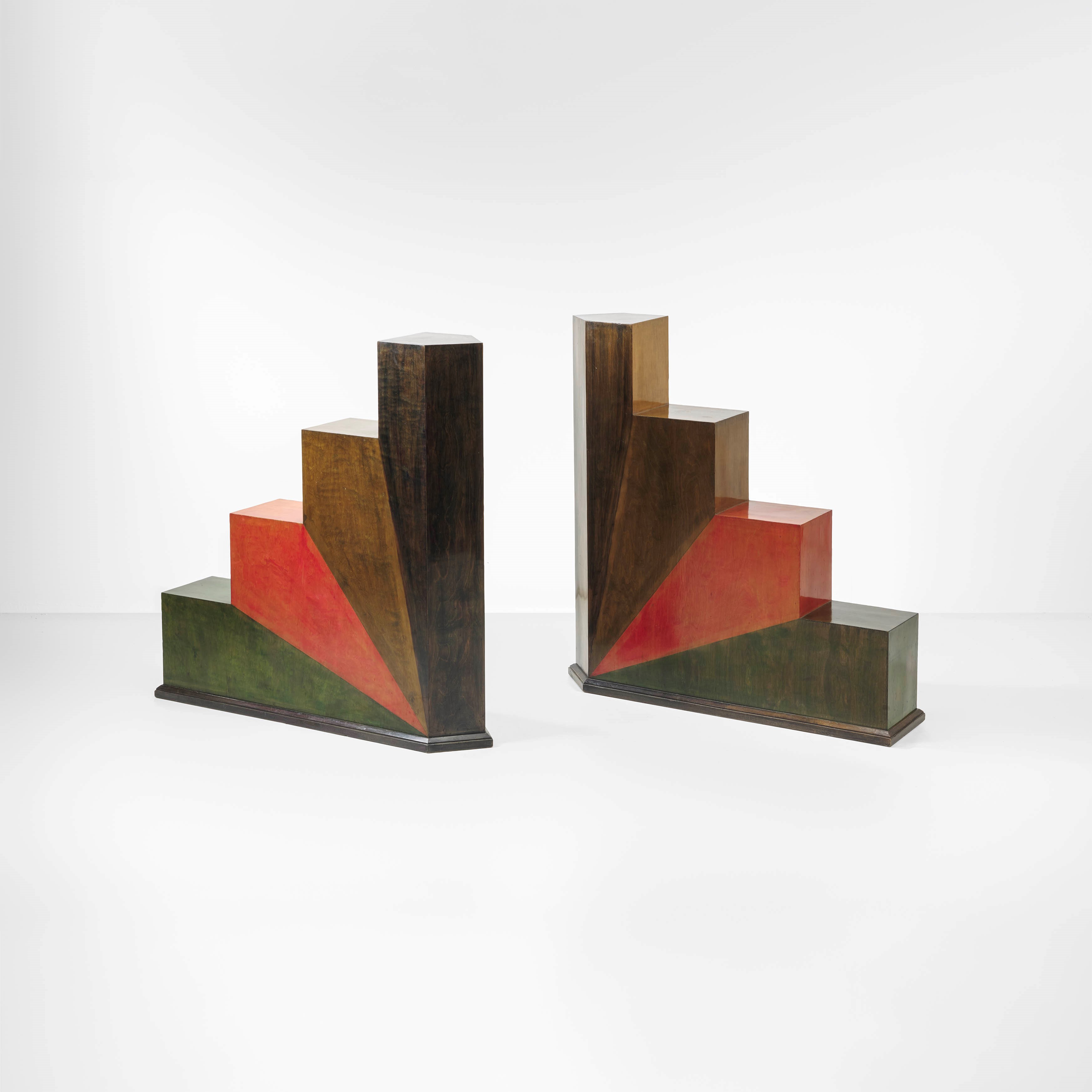Struttura in legno e legno dipinto all'anilina.