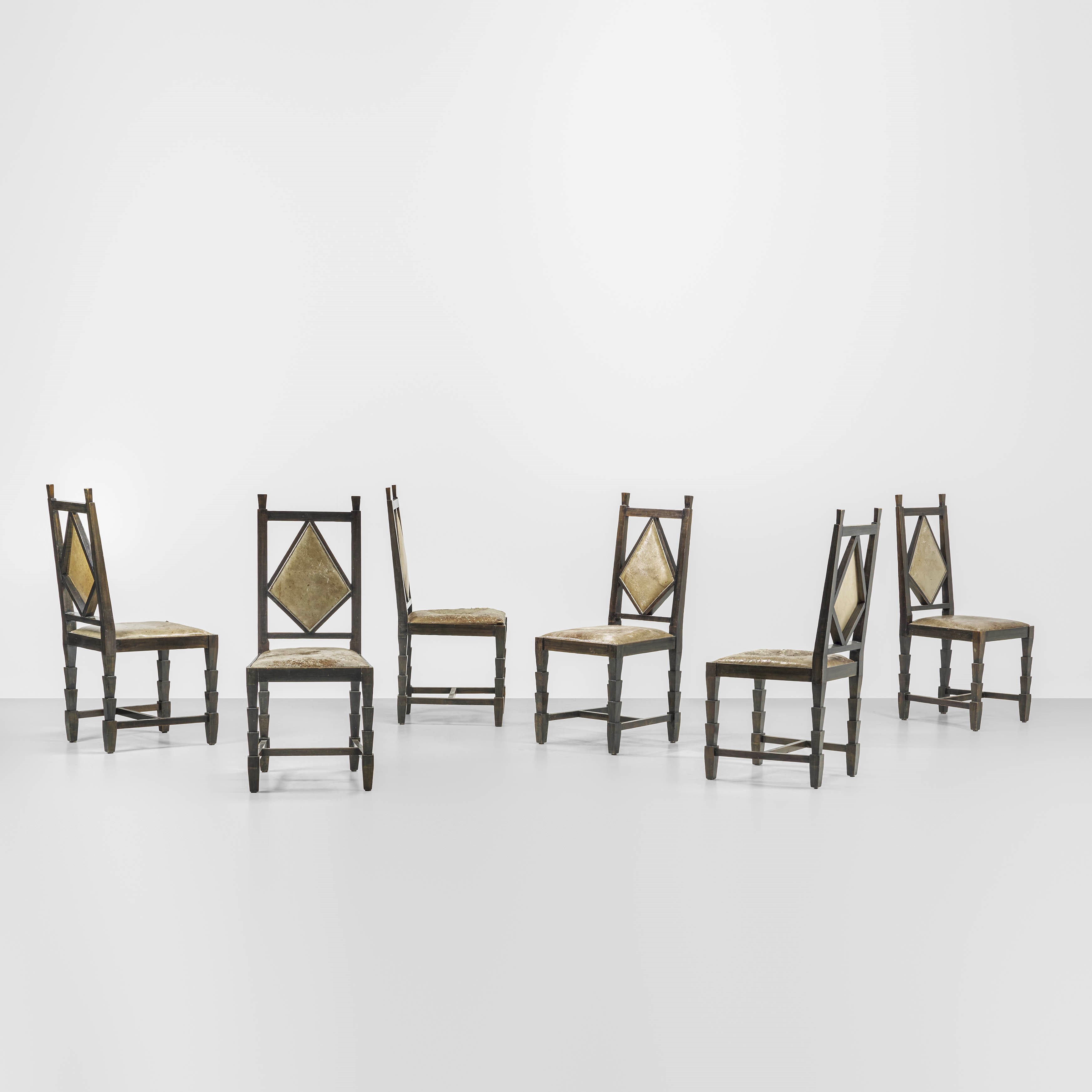 Trasmesso per via ereditaria all’interno della famiglia del committente, con esposizioni pubbliche come l’importante mostra sul Futurismo al Guggenheim di New York (Italian Futurism, 1909–1944: Reconstructing the Universe - New York del 2014), il prezioso arredo è giunto sino a noi miracolosamente intatto e completo di ogni suo elemento: buffet; contro buffet; tavolo quadrato allungabile con 12 sedie; due tavolini d’appoggio; due espositori a forma di scaletta; due applique; un lampadario centrale e due cabaret.