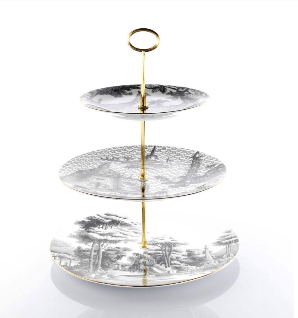 Alzata a tre piani in porcellana della collezione “Souvenirs de Voyage" Simone Guidarelli