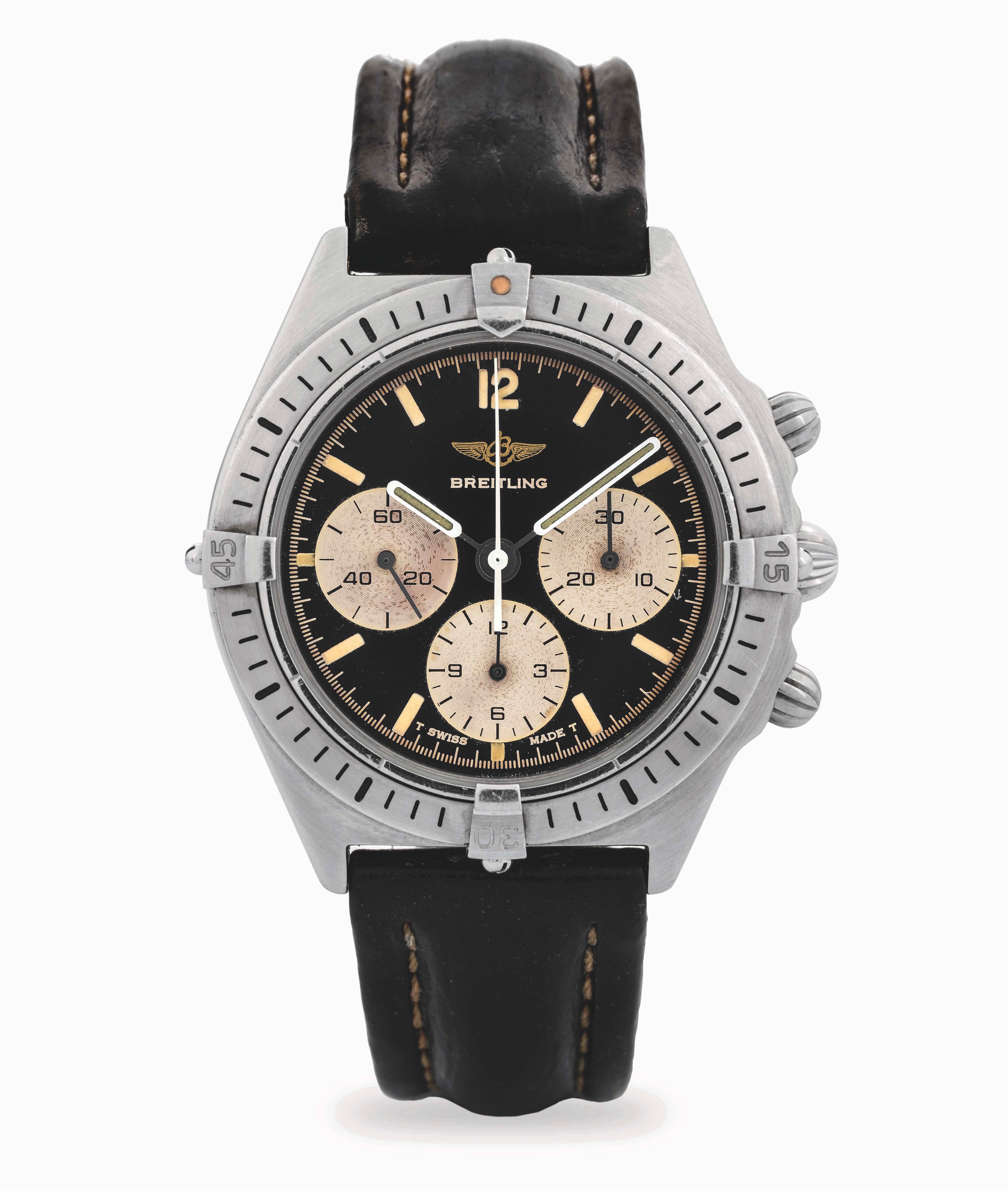 Callisto in acciaio, quadrante nero con contatori bianchi, circa 1980