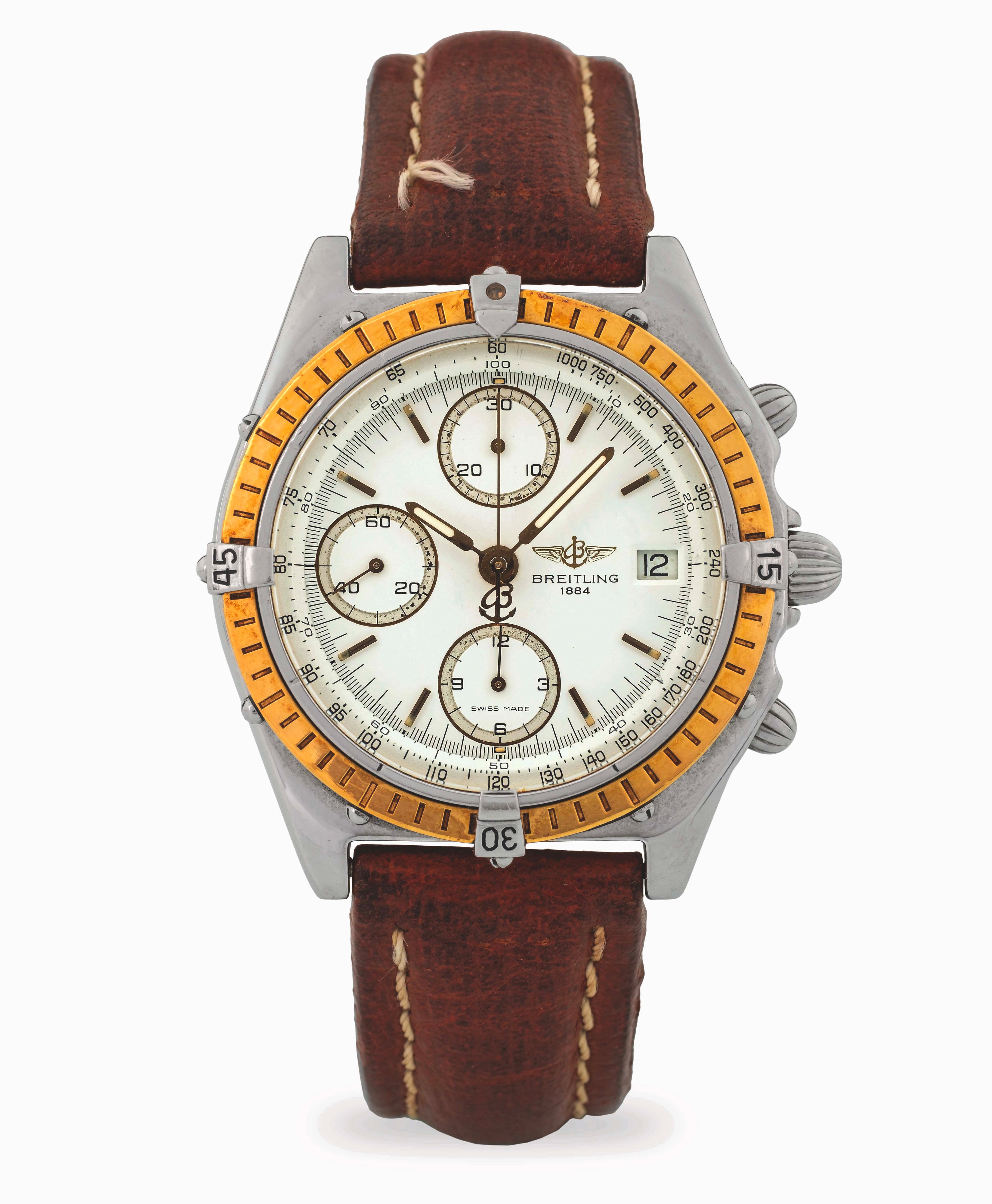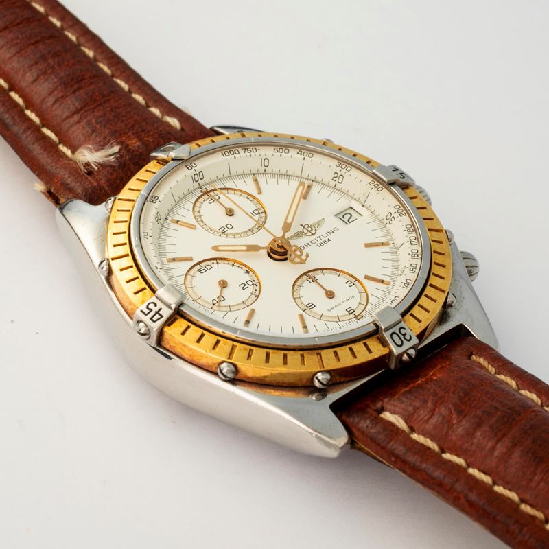Chronomat ref. 81950 in acciaio e oro, quadrante bianco a tre contatori, circa 1990