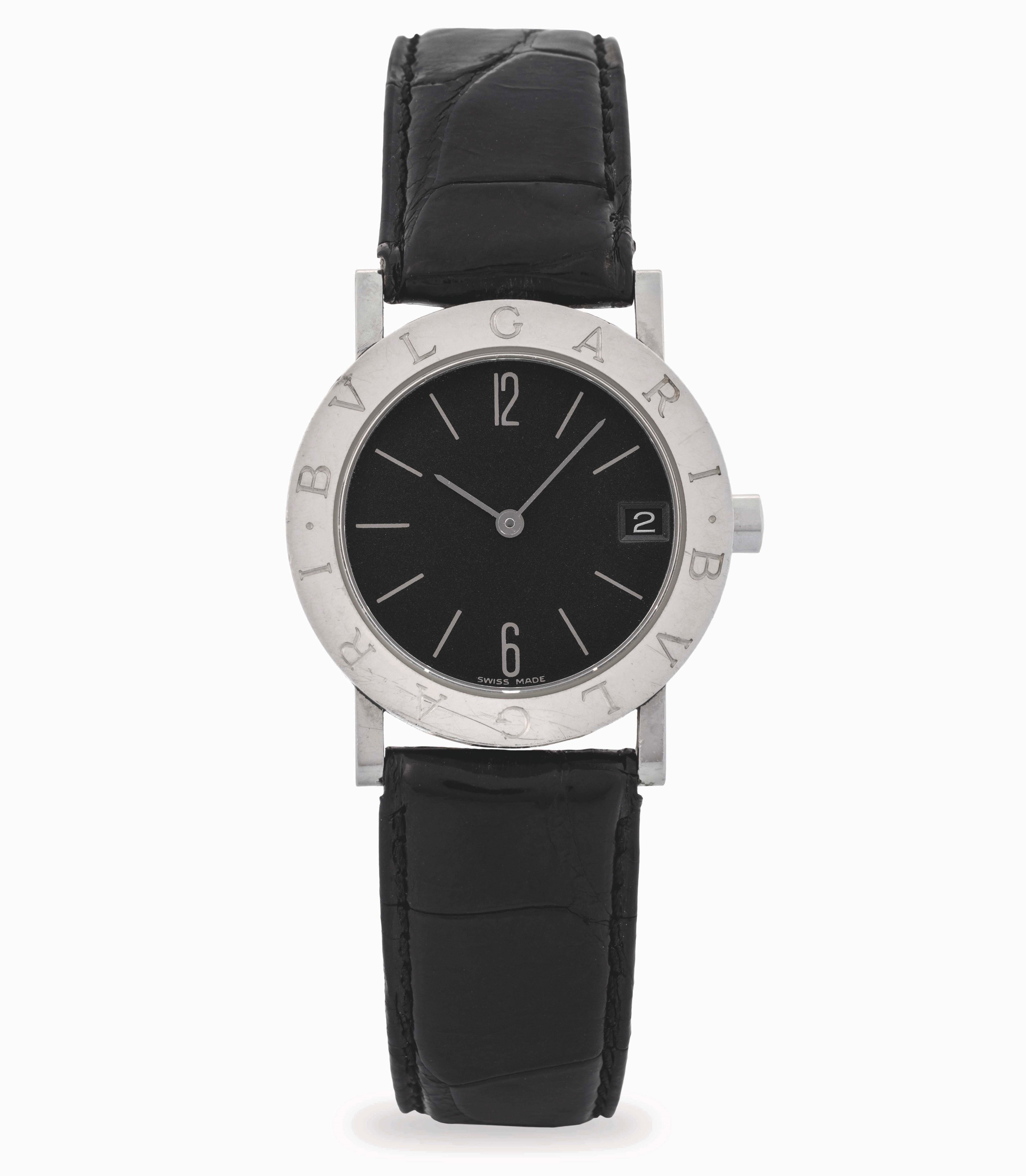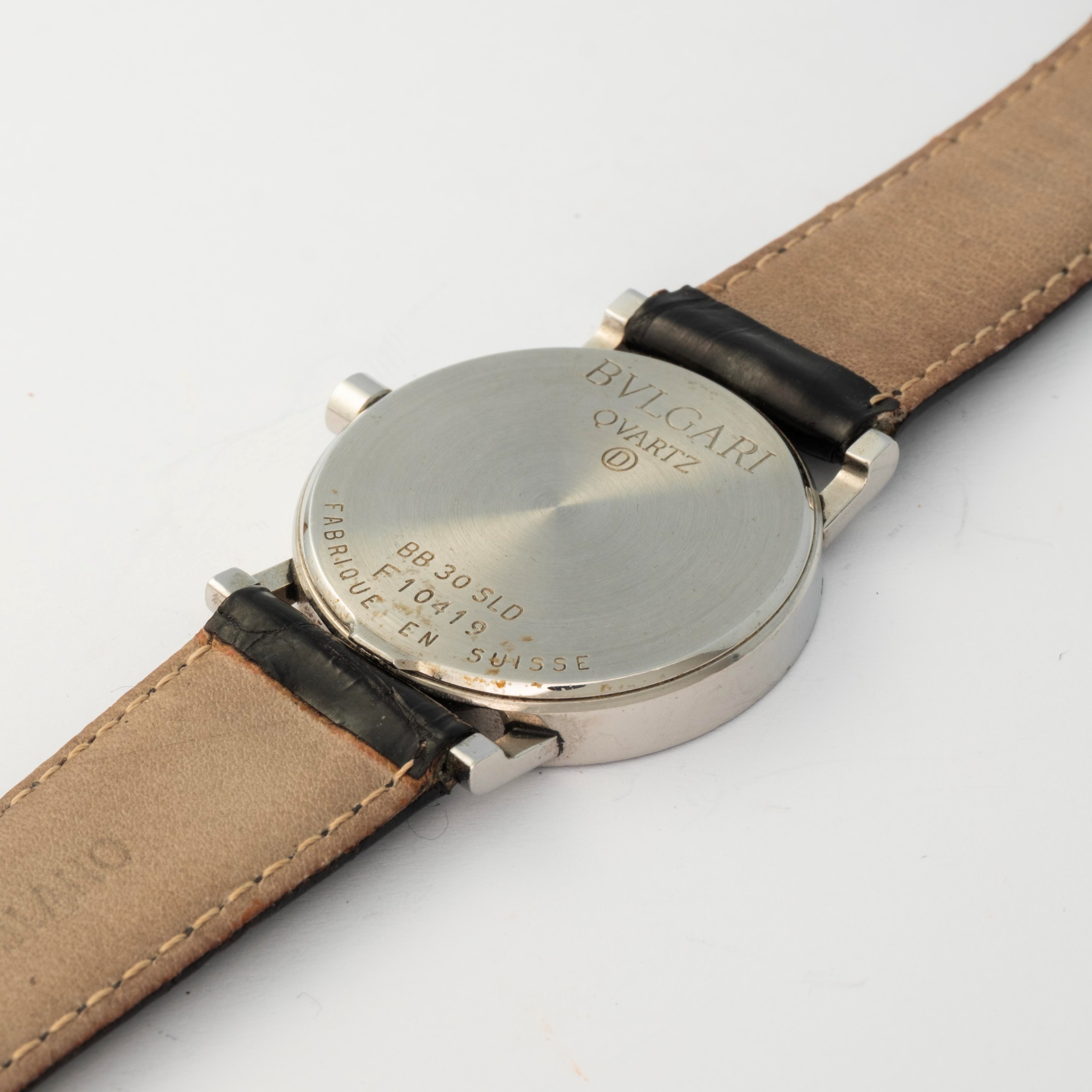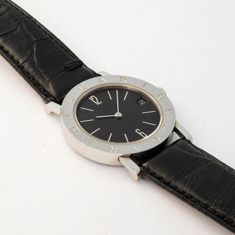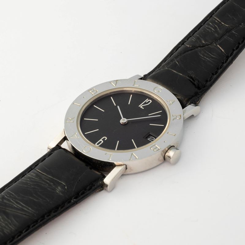 Bulgari in acciaio, quadrante nero con indici a specchio, circa 2000