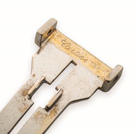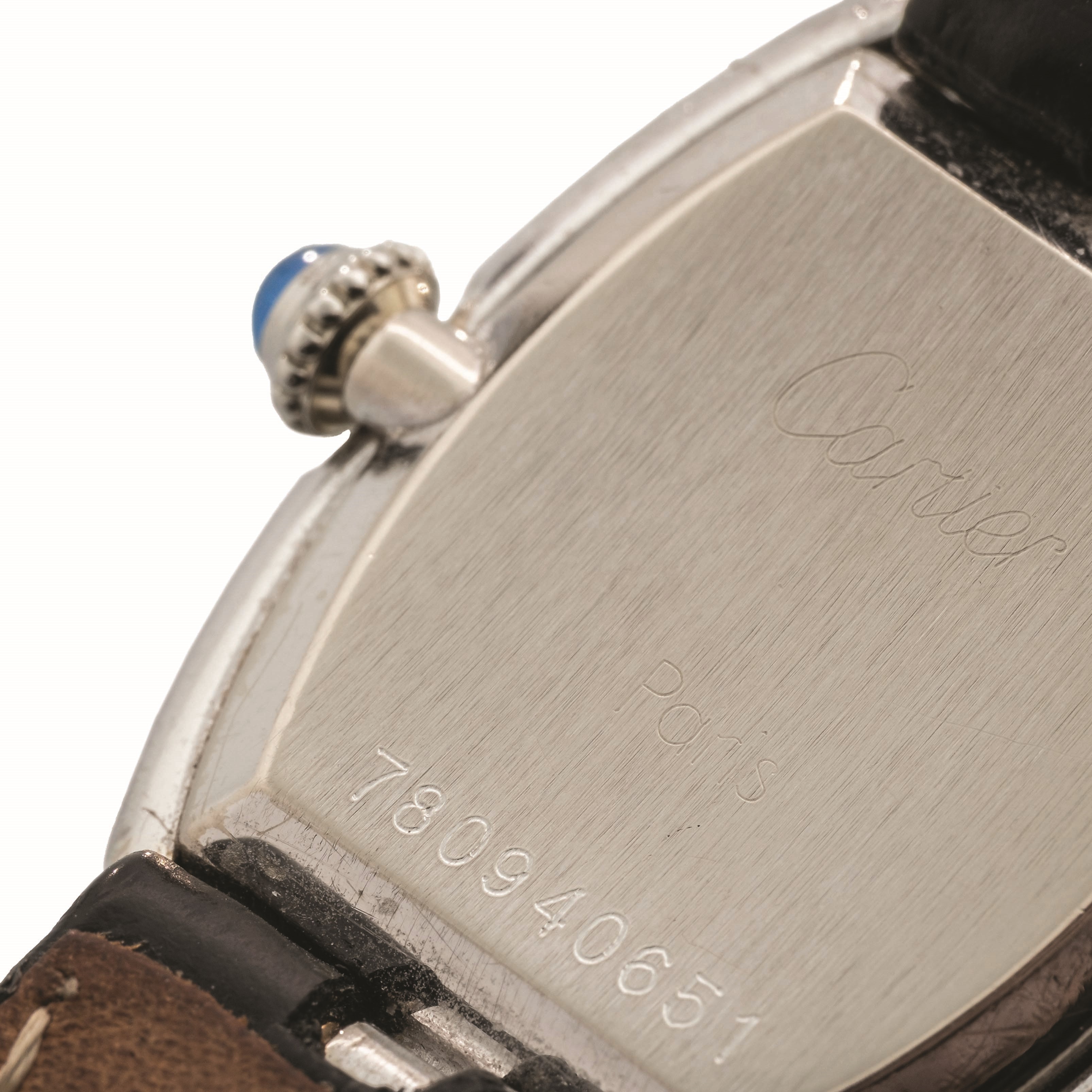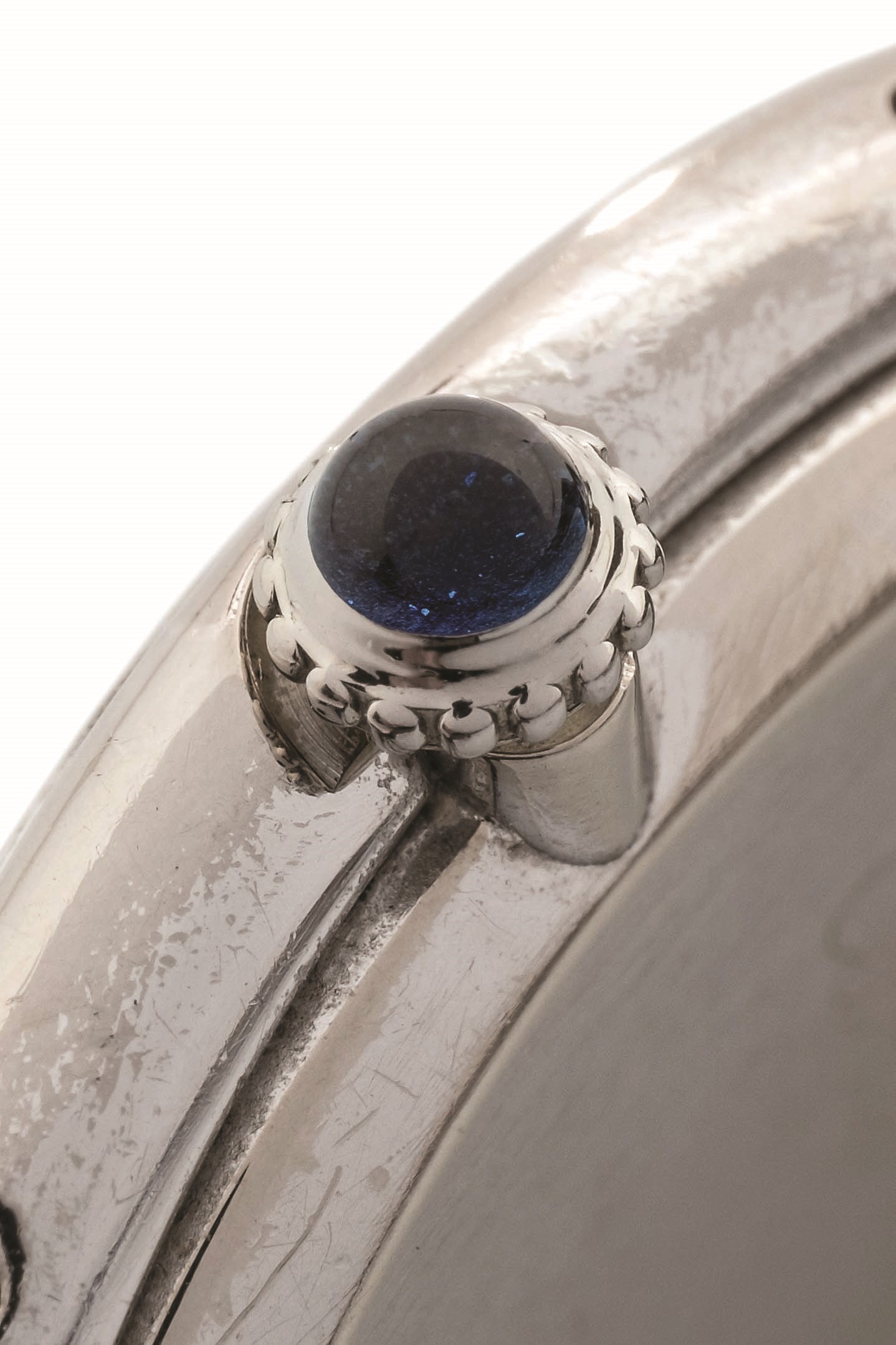Il presente modello, conservato in eccellenti condizioni e prodotto negli anni ’80 a Parigi, si distingue per la cassa a due scalini e risulta essere particolarmente raro per il metallo in cui è stato realizzato: l’oro bianco, prodotto in minori numeri rispetto al più comune oro bianco.