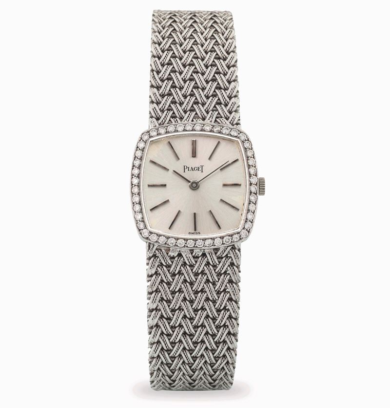 Lady a forma di cuscino in oro bianco 18k con brillanti, circa 1970