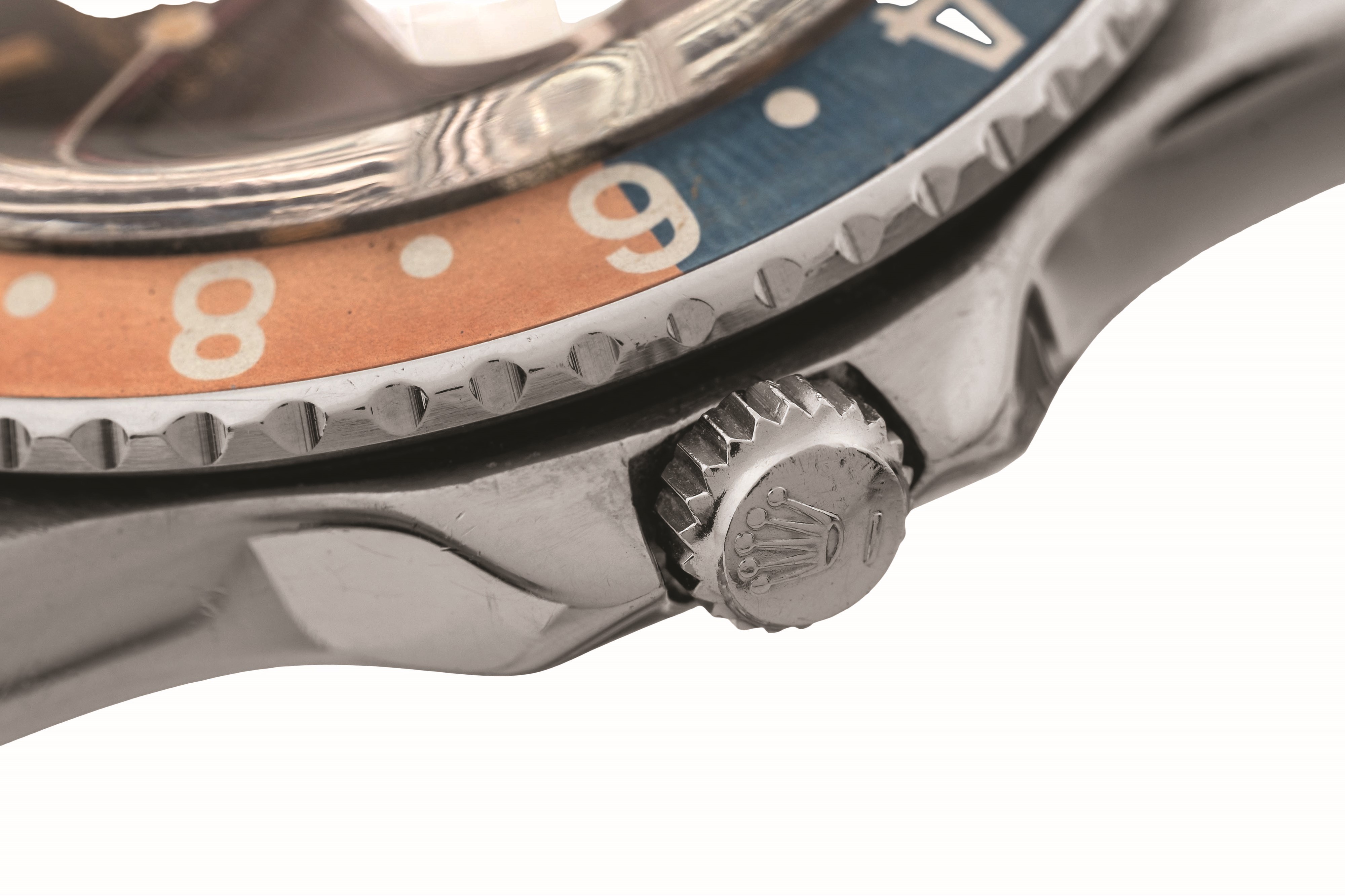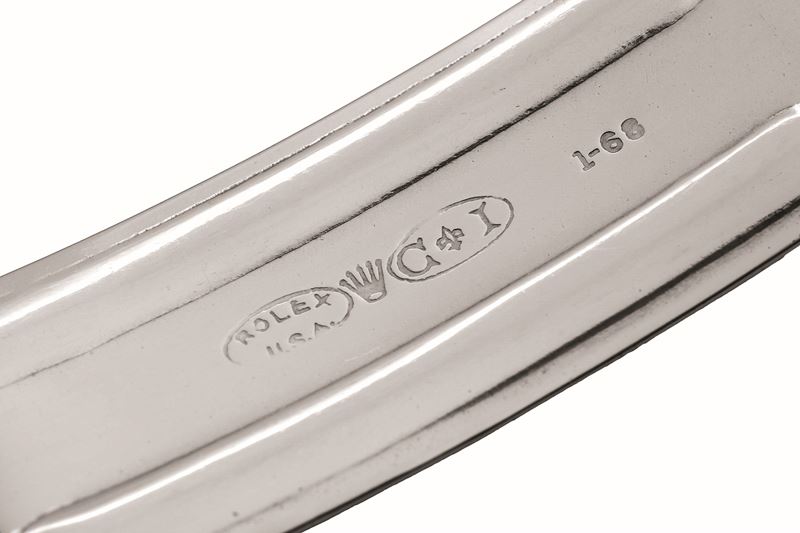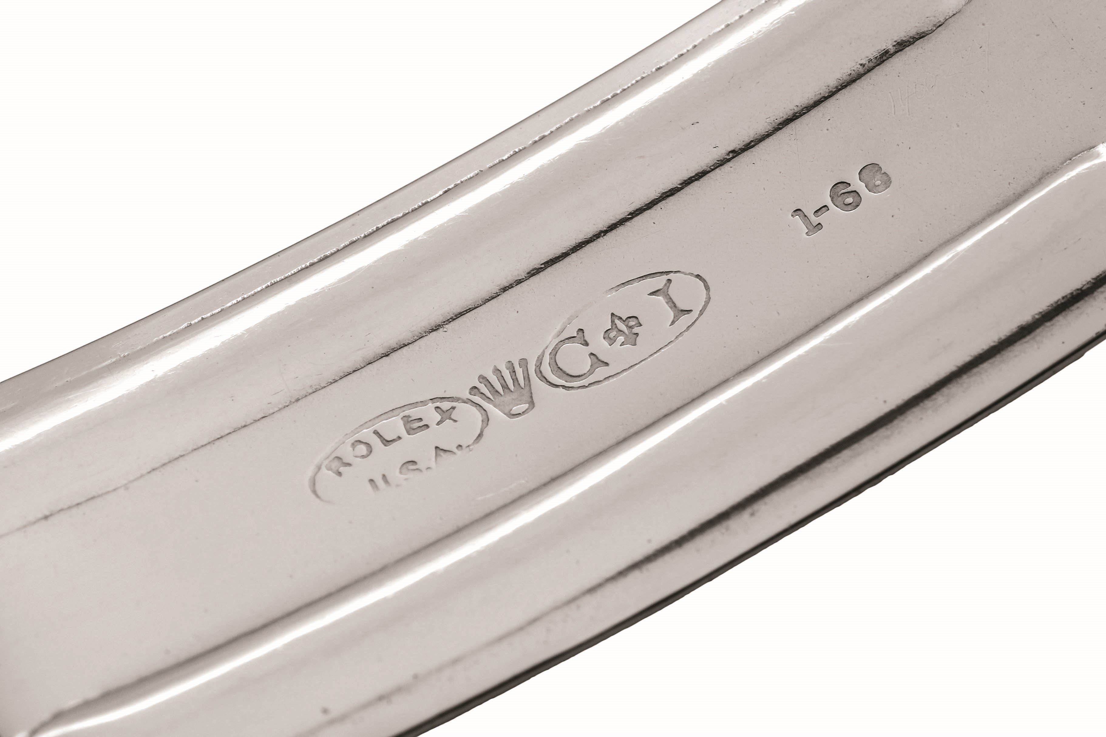 Questa caratteristica, unita alla rarità del bracciale elastico, rende il presente GMT-Master un esempio particolarmente desiderabile della prima generazione 1675, una referenza fondamentale nella storia Rolex.